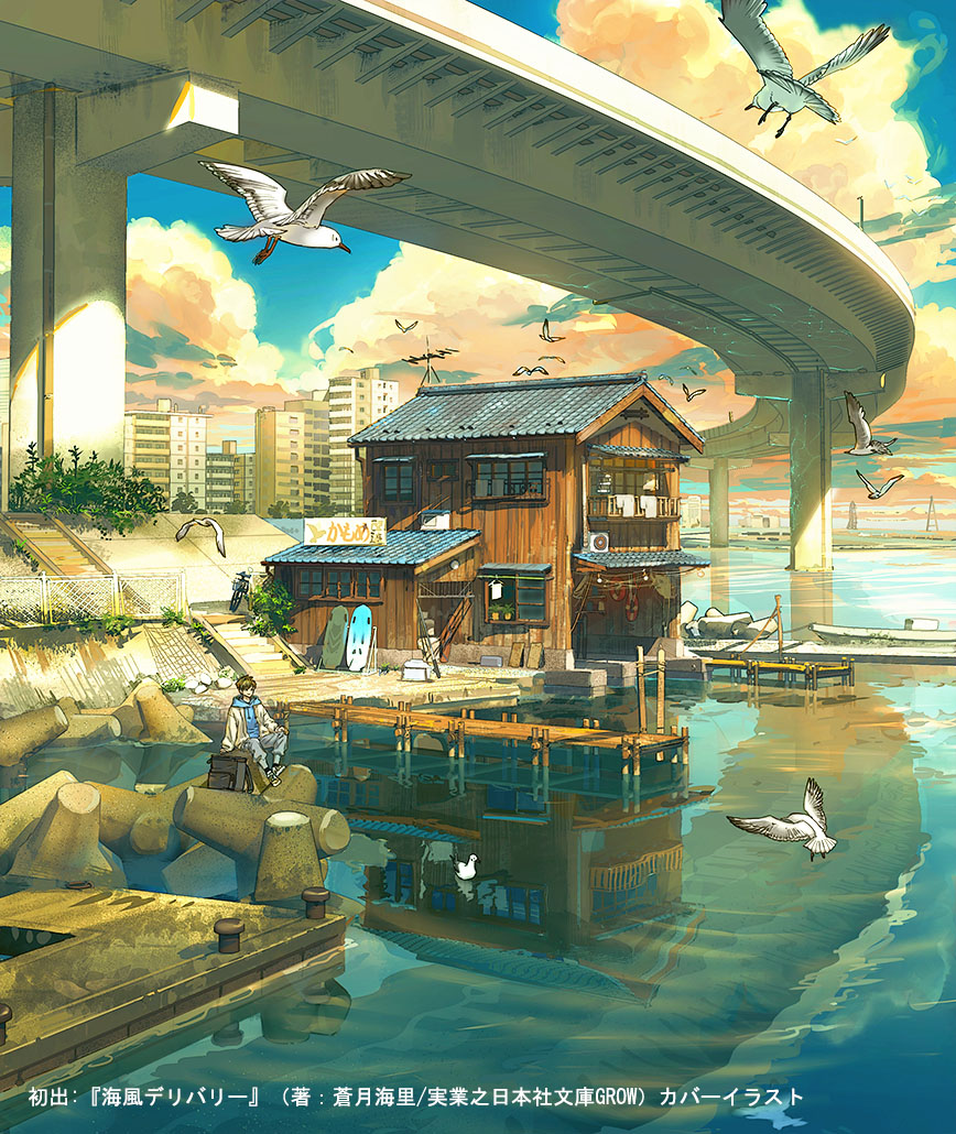 1other bad_link bird blue_sky building cloud cloudy_sky landscape munashichi ocean overpass scenery seagull shore sky viaduct