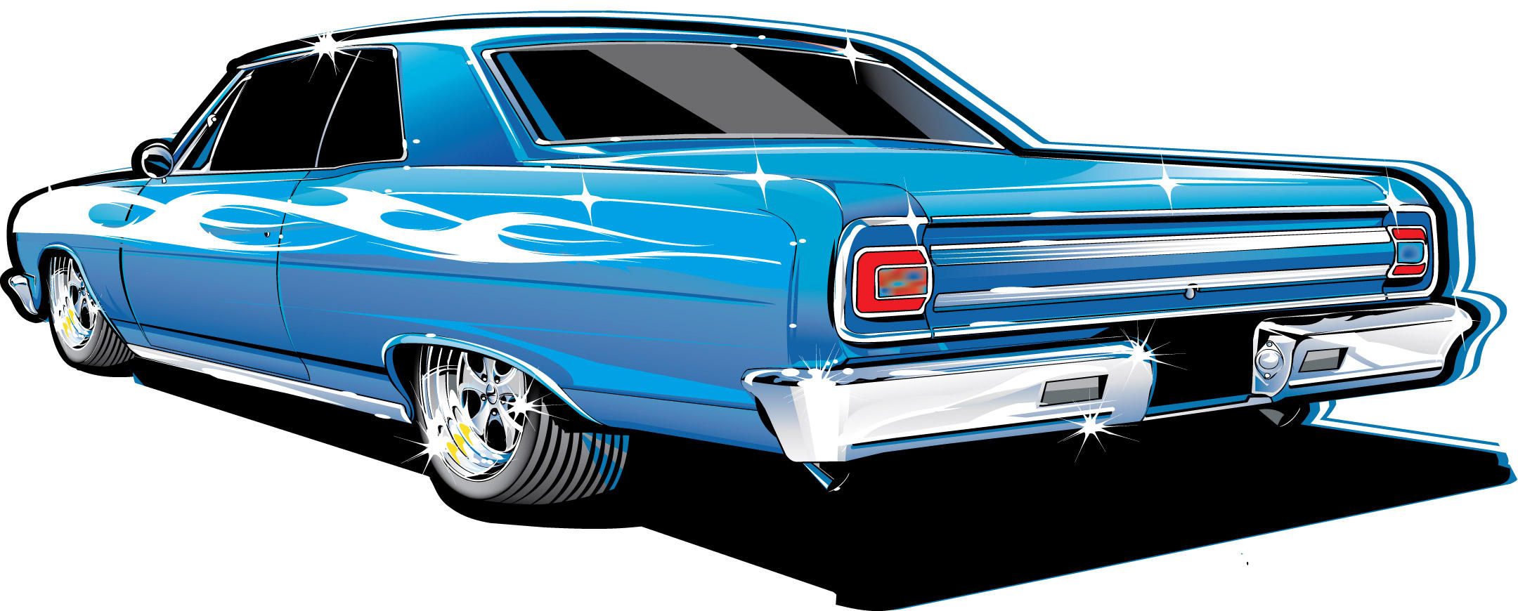 adobe_illustrator_(medium) blue_car car chevrolet chevrolet_malibu commentary english_commentary glint highres lowrider michael_darque motor_vehicle no_humans original shadow vehicle_focus