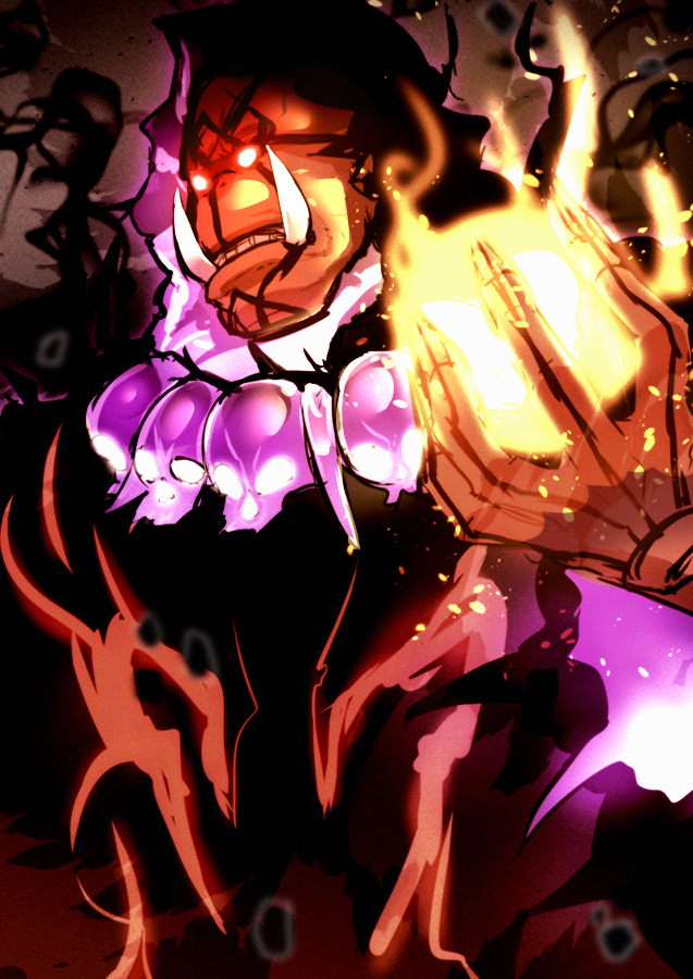 1other aura dark_aura energy fangs fangs_out fire glowing glowing_eyes long_fangs shaman skull solo solo_leveling teeth tusk_(solo_leveling) wab_lev