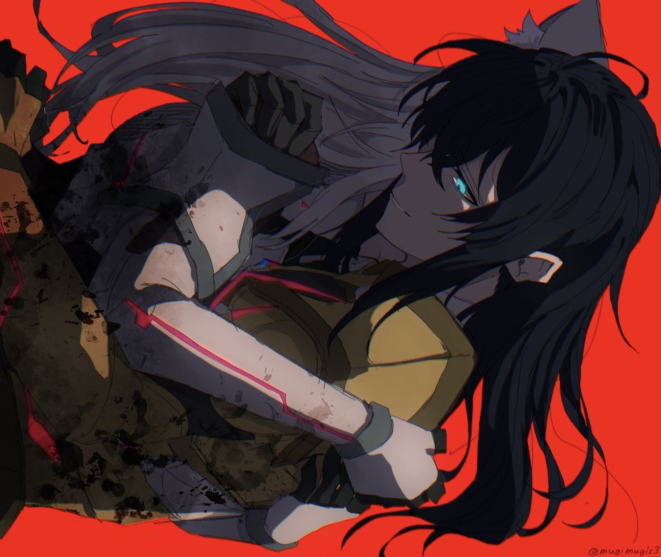 1boy 1girl bad_link black_hair blue_eyes long_hair m_(xenoblade) mugimugis n_(xenoblade) red_background simple_background xenoblade_chronicles_(series) xenoblade_chronicles_3