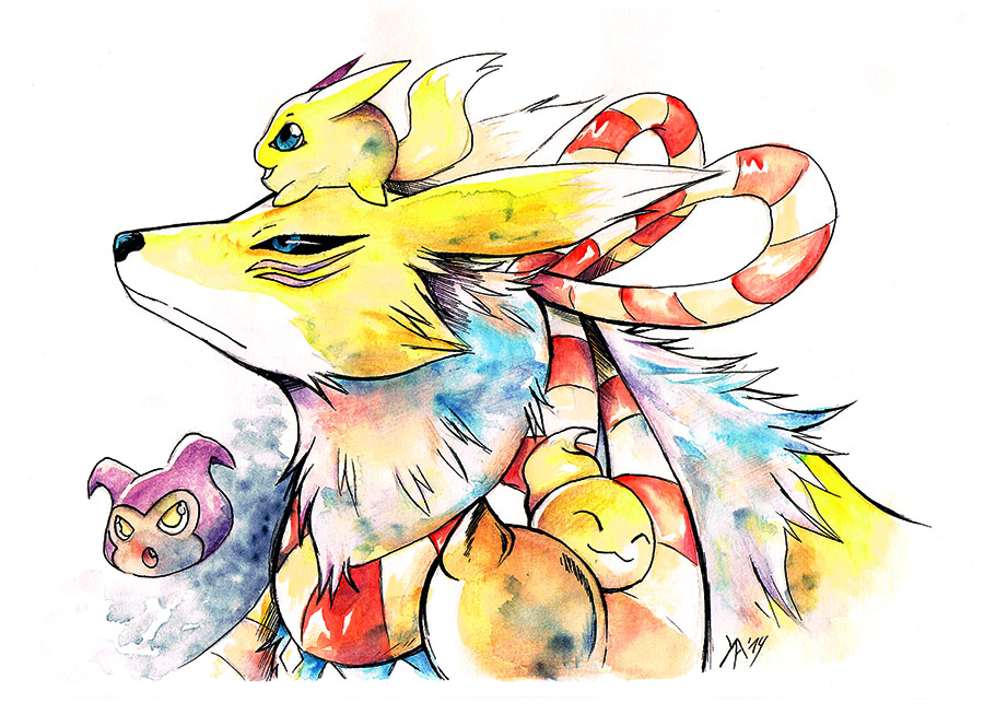 digimon digimon_(creature) kitsune kyubimon kyuubi multiple_tails pokomon_(digimon) relemon tail yarmon