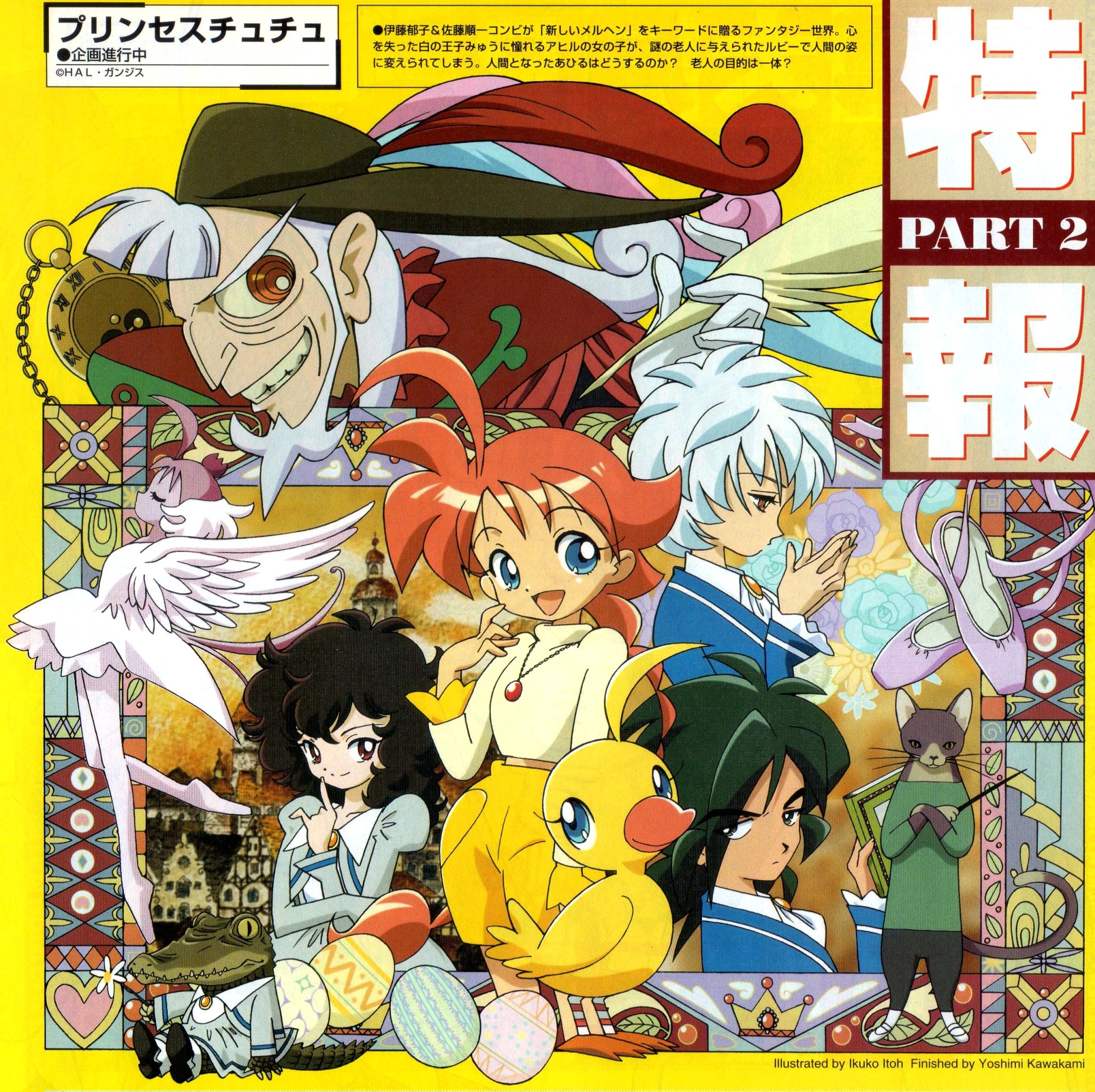 4boys 5girls ahiru_(duck)_(princess_tutu) ahiru_(princess_tutu) ahoge alternate_costume angel_wings animage animal ballerina ballet ballet_slippers bird book character_counter_request character_request drosselmeyer_(princess_tutu) duck easter_egg egg fakir_(princess_tutu) flower furry group_picture highres holding holding_book holding_quill itou_ikuko kawakami_yoshimi magazine_scan multiple_boys multiple_girls mytho_(princess_tutu) neko-sensei official_alternate_costume official_art princess_tutu princess_tutu_(character) quill retro_artstyle rue_(princess_tutu) scan tutu white_hair wings