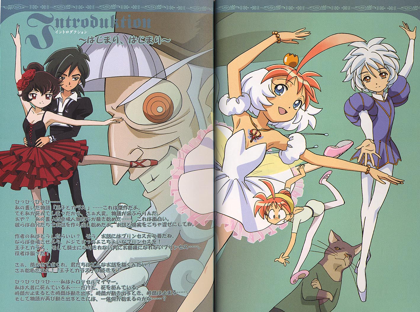 ahiru_(princess_tutu) ahoge arabesque_(pose) artist_request ballerina ballet ballet_slippers black_hair blue_eyes cat crown dark-skinned_male dark_skin drosselmeyer_(princess_tutu) en_pointe fakir_(princess_tutu) flower hair_bun hair_flower hair_ornament jewelry juliet_sleeves long_sleeves magazine_scan mini_crown multicolored_hair mytho_(princess_tutu) necklace neko-sensei official_art pale_skin pantyhose prince princess_tutu princess_tutu_(character) puffy_sleeves red_eyes rose rue_(princess_tutu) scan single_hair_bun spaghetti_strap translation_request tutu two-tone_hair white_pantyhose