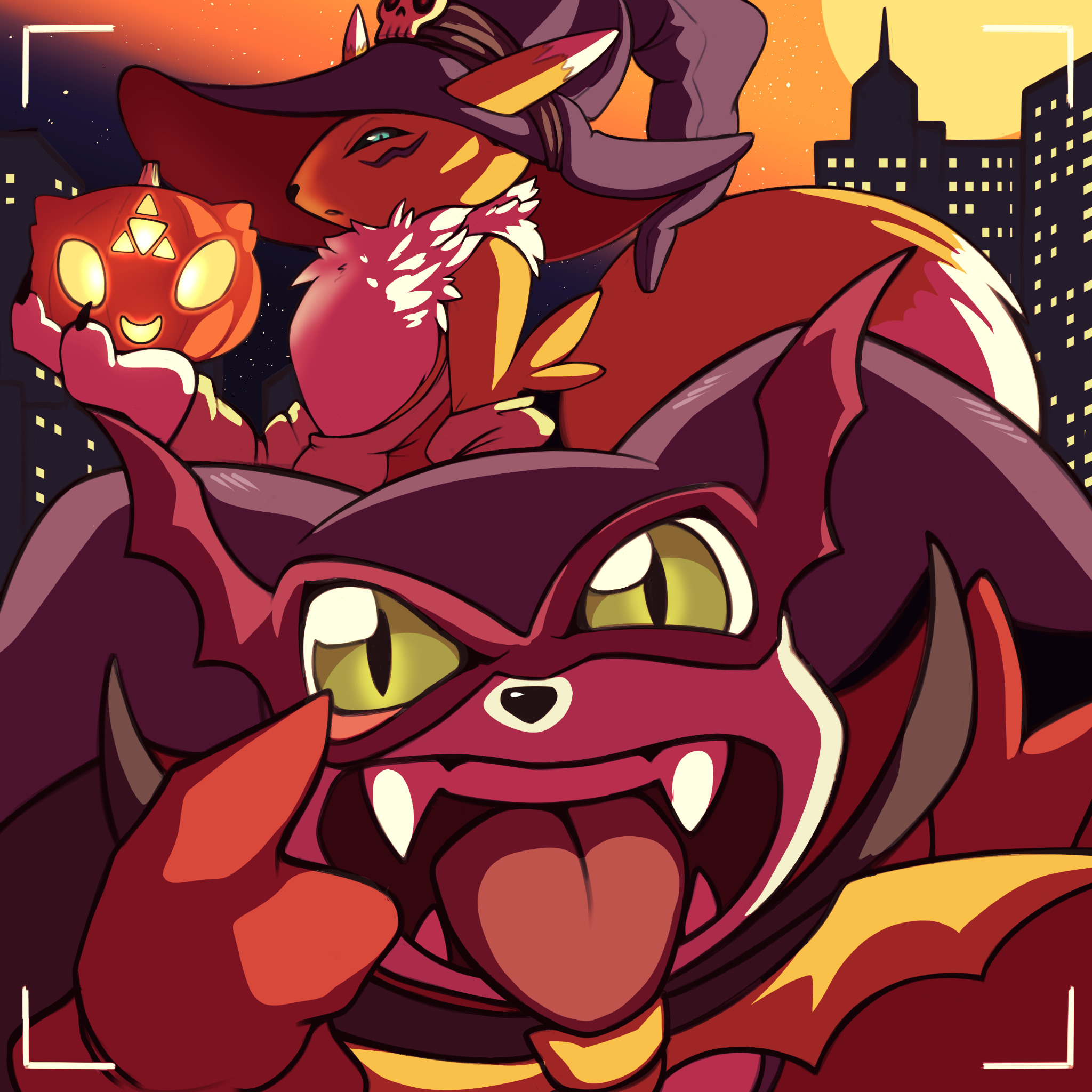 culumon digimon digimon_(creature) digimon_tamers fluffy fox_girl fox_tail furry furry_female halloween halloween_costume highres impmon renamon tail zero_unit