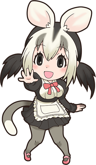 1girl animal_ears apron artist_request black_eyes black_hair kemono_friends multicolored_hair official_art possum_ears possum_girl possum_tail ribbon tail transparent_background twintails white-eared_opossum_(kemono_friends) white_hair