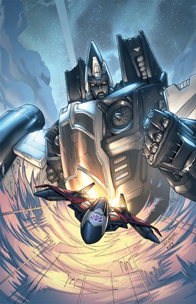 aircraft airplane artist_collaboration clenched_hand comic_cover cover_image decepticon fighter_jet kieran_oats mecha mecha_focus military_vehicle no_humans official_art ramjet rex-203 robot science_fiction smoke space star_(sky) the_transformers_(idw) transformers