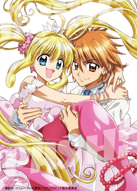 blonde_hair blue_eyes brown_hair carrying copyright_notice couple doumoto_kaito fins fish_tail formal_clothes hair_ornament hair_scrunchie long_hair mermaid mermaid_melody_pichi_pichi_pitch monster_girl nanami_lucia nanami_lucia_(mermaid) official_art orange_hair princess_carry scrunchie second-party_source short_hair simple_background smile spiked_hair suit tail twintails watermark white_background
