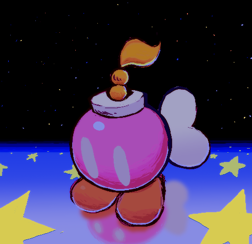 12thchristmas 1girl bob-omb bob-omb_buddy bomb bombette explosive full_body looking_down mario_(series) nintendo no_humans paper_mario paper_mario_64 reflection solo space standing star_(sky) star_(symbol)