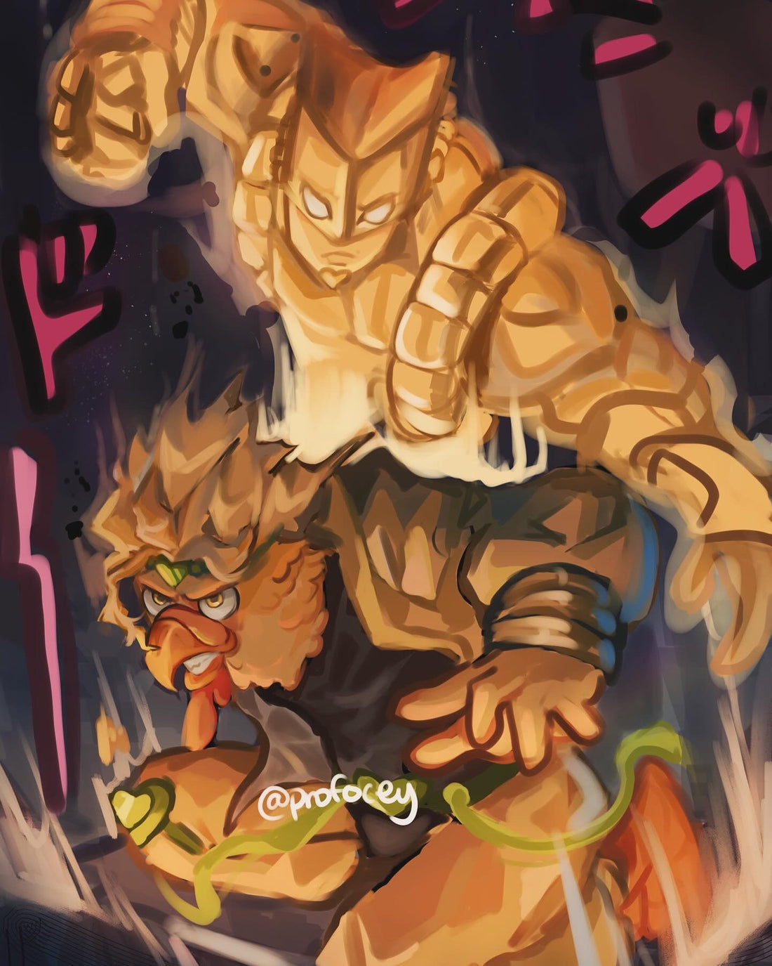1boy beak bird black_shirt blonde_hair chicken_boy cosplay dio_brando dio_brando_(cosplay) ernie_the_giant_chicken family_guy grin highres jacket jojo_no_kimyou_na_bouken male_focus panties profocey shirt smile stand_(jojo) stardust_crusaders teeth the_world_(cosplay) the_world_(stand) underwear yellow_eyes yellow_jacket yellow_panties