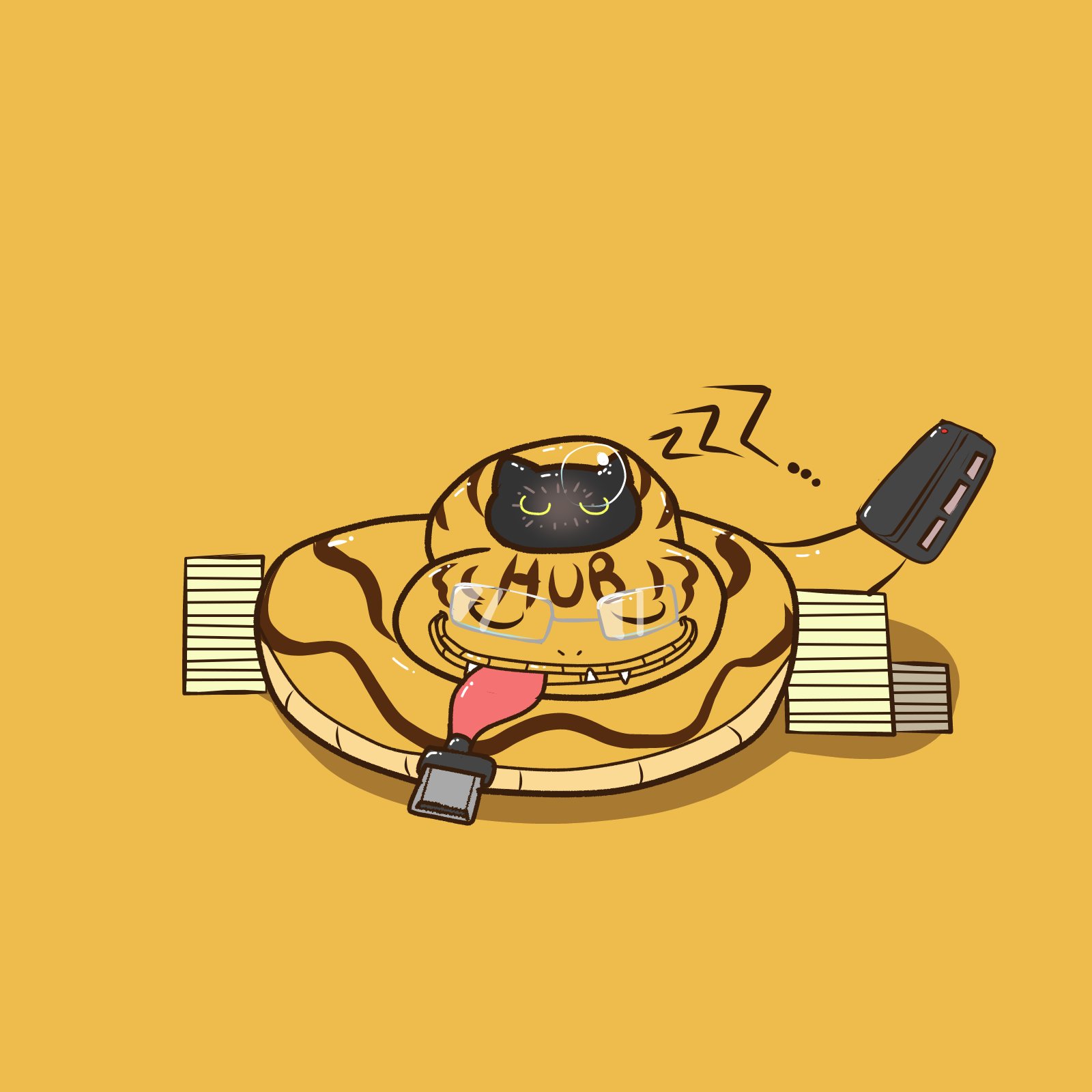 black_skin botamon closed_eyes colored_skin digimon digimon_(creature) glasses highres hubmon simple_background sleeping snake tongue tongue_out usb yellow_background youwantstars zzz