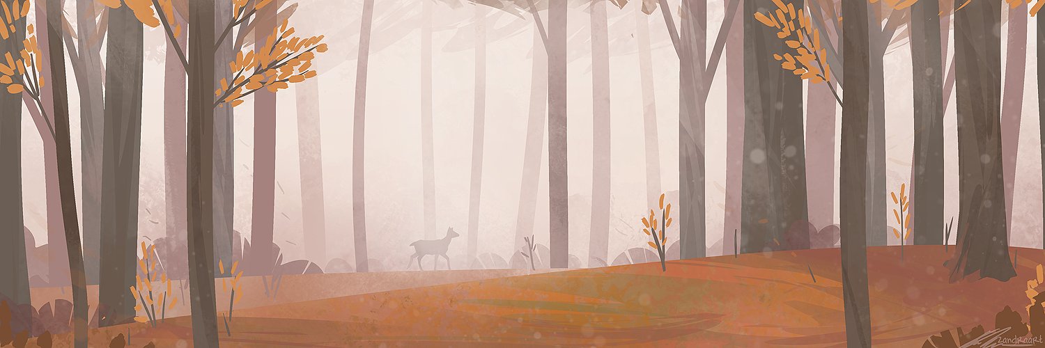 animal artist_name autumn blurry bush day deer depth_of_field fog forest landscape nature no_humans original outdoors sapling scenery signature snowing tree zandra