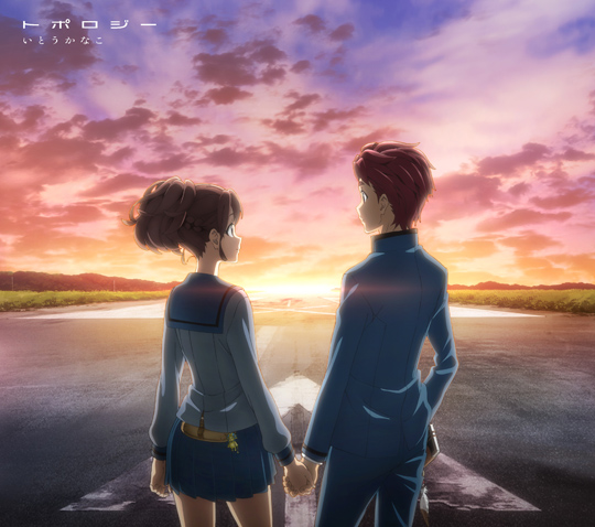 1boy 1girl album_cover bare_legs blue_jacket blue_pants braid brown_hair chuo_tanegashima_high_school_uniform cloud couple cover grey_serafuku half_up_braid hetero high_collar high_ponytail jacket long_sleeves looking_at_another miniskirt official_art outdoors pants phinx_(robotics;notes) pleated_skirt ponytail red_eyes red_hair robotics;notes school_uniform science_adventure senomiya_akiho serafuku short_hair skirt sky smile sunset thighs winter_uniform yashio_kaito