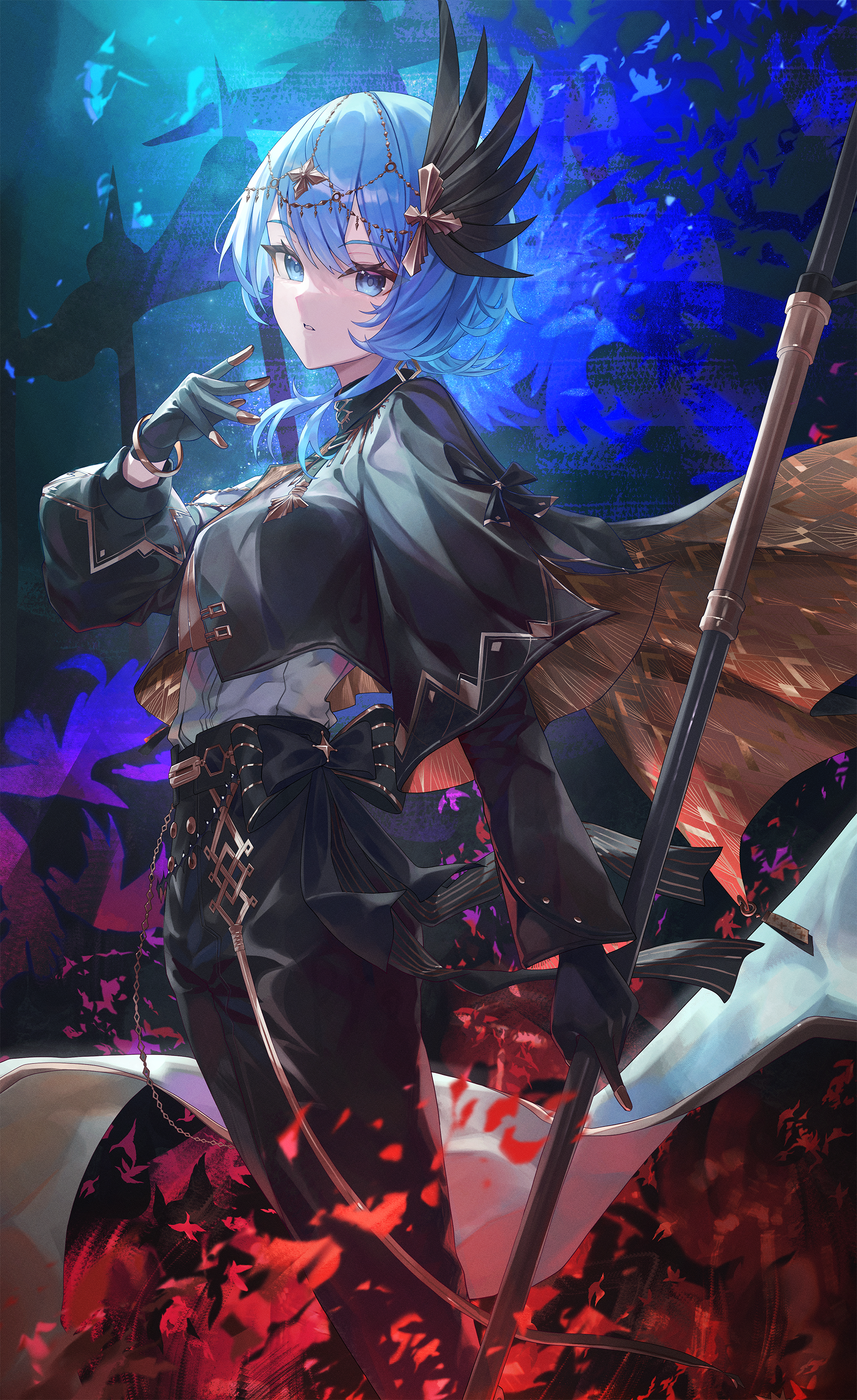 &{ID:12549231 CreatedAt:Sat Aug 30 19:15:38 -0500 2025 Score:1 Width:1712 Height:2796 MD5:fe450c5fb246baf7172d0a5124a74111 Directory:fe/45 Image:fe450c5fb246baf7172d0a5124a74111.png Rating:general Source:https://www.pixiv.net/artworks/133796737 Change:1756599339 Owner:danbooru CreatorID:6498 ParentID:0 Sample:1 PreviewHeight:350 PreviewWidth:214 Tags:1girl absurdres atatatatame01 black_gloves black_jacket black_pants blue_eyes blue_hair bow bracelet commentary_request double-parted_bangs gloves gold_trim hair_between_eyes hair_ornament highres holding holding_polearm holding_weapon hololive hoshimachi_suisei hoshimachi_suisei_(spectra_of_nova) jacket jewelry layered_sleeves long_sleeves looking_at_viewer official_alternate_costume pants parted_lips polearm revision shirt shirt_tucked_in short_hair short_over_long_sleeves short_sleeves sidelocks solo star_(symbol) star_in_eye symbol_in_eye virtual_youtuber waist_bow weapon white_shirt wide_sleeves Title: HasNotes:false HasComments:false FileURL:https://img2.gelbooru.com/images/fe/45/fe450c5fb246baf7172d0a5124a74111.png PreviewURL:https://gelbooru.com/thumbnails/fe/45/thumbnail_fe450c5fb246baf7172d0a5124a74111.jpg SampleURL:https://img2.gelbooru.com/samples/fe/45/sample_fe450c5fb246baf7172d0a5124a74111.jpg SampleHeight:1388 SampleWidth:850 Status:active PostLocked:0 HasChildren:false IsVideo:false DisplayDate:30.08.2025 19:15}