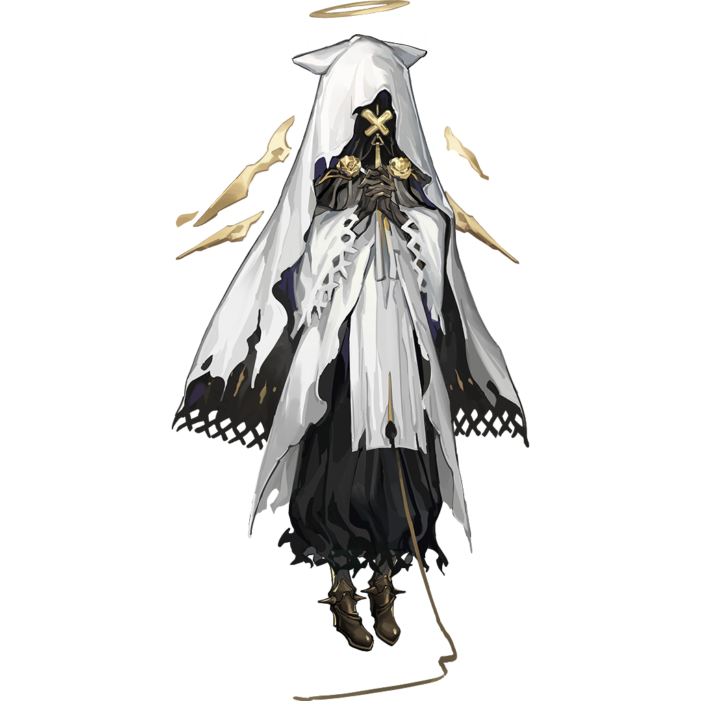 1other animal_ears arknights azling black_skirt detached_wings full_body gold_halo golden_wings halo limited_palette long_sleeves official_art robe simple_background skirt solo standing tachi-e third-party_source traditional_halo transparent_background veil veteran_shrine_nurturer_(arknights) white_robe white_veil wide_sleeves wings