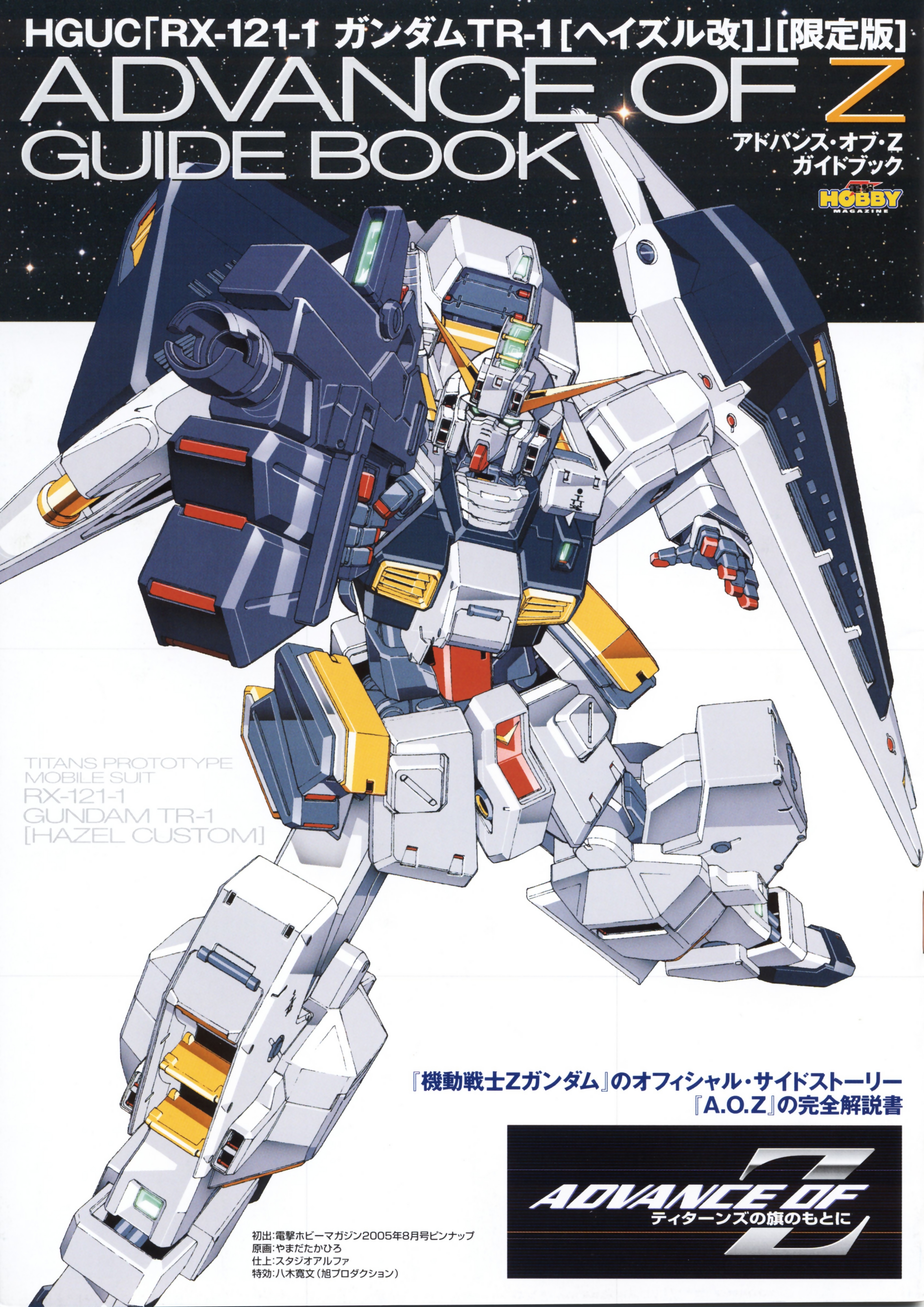 absurdres advance_of_zeta aiming beam_rifle copyright_name cover cover_page dengeki_hobby energy_gun gundam gundam_tr-1_hazel hazel_custom_gundam highres holding holding_weapon logo machinery magazine_scan mecha mecha_focus mixed-language_text mobile_suit robot roundel scan science_fiction shield solo titans_(gundam) titans_test_team_(gundam) title v-fin weapon yamada_takahiro