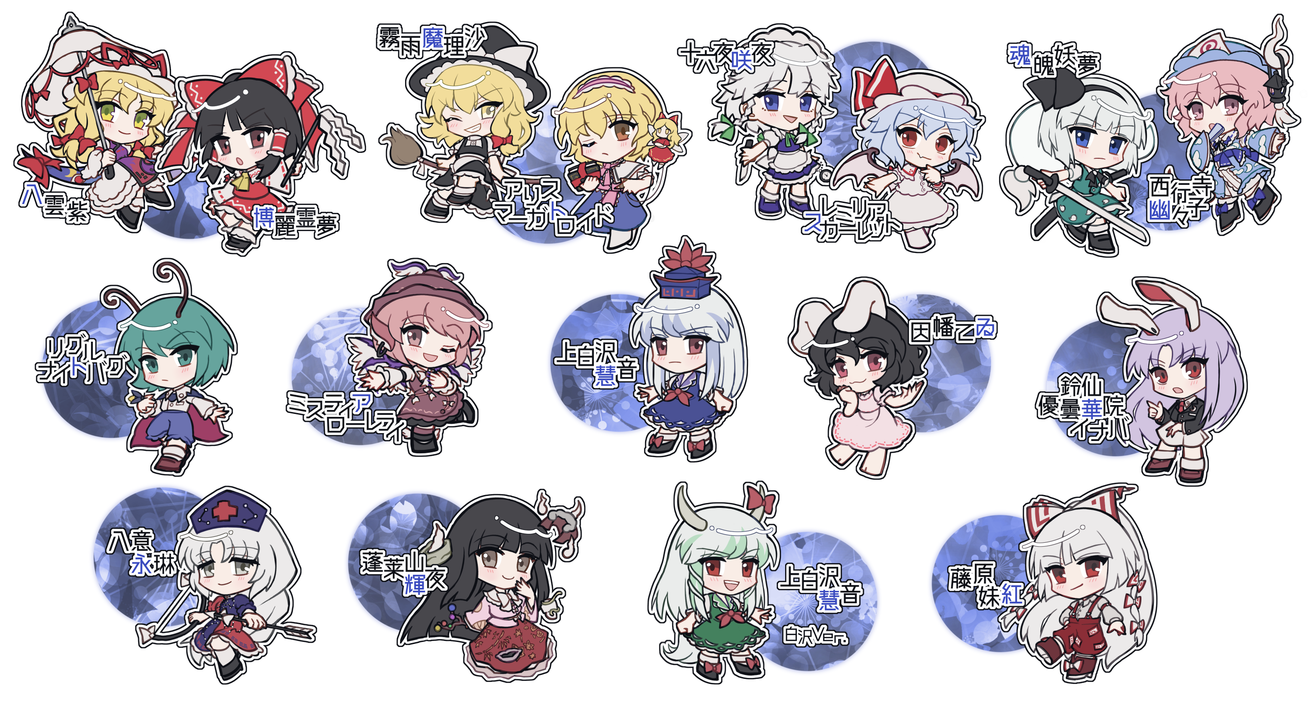 6+girls :3 :d :o ;d alice_margatroid animal_ears antennae arrow_(projectile) ascot barefoot bird_ears bird_wings black_bow black_bowtie black_cape black_hair black_hairband black_hat black_jacket black_shoes black_skirt black_vest blonde_hair blue_bow blue_dress blue_eyes blue_hair blue_hat blue_kimono blue_shoes blue_shorts blunt_bangs blunt_ends blush book boots bow bow_(weapon) bowtie braid branch broom broom_riding brown_dress brown_eyes brown_shoes brown_socks cape character_name chibi chibi_only closed_mouth collared_shirt commentary_request crescent crescent_pin cross detached_sleeves dress earrings everyone fang fang_out floppy_ears footwear_bow frilled_bow frilled_dress frilled_hair_tubes frilled_hairband frilled_hat frilled_shirt_collar frilled_skirt frills frown fujiwara_no_mokou gohei green_bow green_dress green_hair green_ribbon green_skirt green_vest grey_eyes grey_hair grin hair_bow hair_tubes hairband hakurei_reimu hand_on_own_chest hand_on_own_hip hand_to_own_mouth hat hat_bow hat_ribbon highres holding holding_arrow holding_book holding_bow_(weapon) holding_branch holding_gohei holding_knife holding_sword holding_umbrella holding_weapon horn_bow horn_ornament horns houraisan_kaguya imperishable_night inaba_tewi index_finger_raised izayoi_sakuya jacket japanese_clothes jeweled_branch_of_hourai jewelry kamishirasawa_keine kimono kirisame_marisa knife konpaku_youmu konpaku_youmu_(ghost) long_hair long_sleeves looking_at_viewer mirei_(miirei) mob_cap multicolored_dress multiple_girls mystia_lorelei neck_ribbon neckerchief necktie no_shoes one_eye_closed open_mouth outline outstretched_arm pants pink_dress pink_eyes pink_hair pink_hairband pink_hat pink_shirt pink_skirt puffy_short_sleeves puffy_sleeves purple_hair rabbit_ears red_boots red_bow red_cape red_cross red_dress red_eyes red_neckerchief red_necktie red_pants red_ribbon red_shirt red_skirt reisen_udongein_inaba remilia_scarlet ribbon ribbon-trimmed_sleeves ribbon_trim saigyouji_yuyuko shanghai_doll sheath shirt shoes short_hair short_sleeves shorts sidelocks single_earring skin_fang skirt sleeve_garter sleeveless sleeveless_shirt smile socks sword teeth touhou translated triangular_headpiece twin_braids two-sided_cape two-sided_fabric umbrella unsheathed upper_teeth_only v-shaped_eyebrows vest waist_bow weapon white_bow white_bowtie white_dress white_shirt white_skirt white_sleeves white_socks white_umbrella winged_hat winged_shoes wings wriggle_nightbug wrist_cuffs yagokoro_eirin yakumo_yukari yellow_ascot yellow_eyes