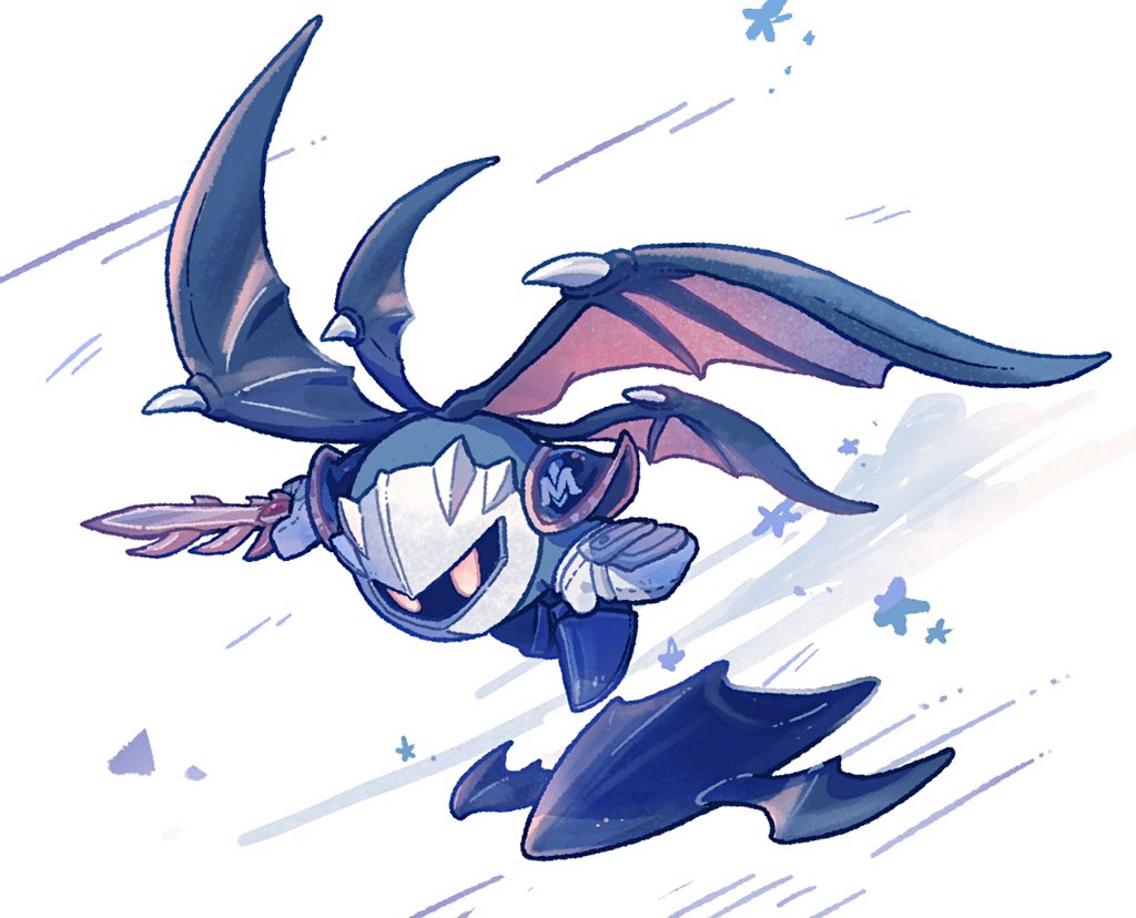 boots commentary full_body galaxia_(sword) harukui holding holding_sword holding_weapon kirby_(series) mask meta_knight nintendo no_humans simple_background solo sword weapon white_background wings yellow_eyes