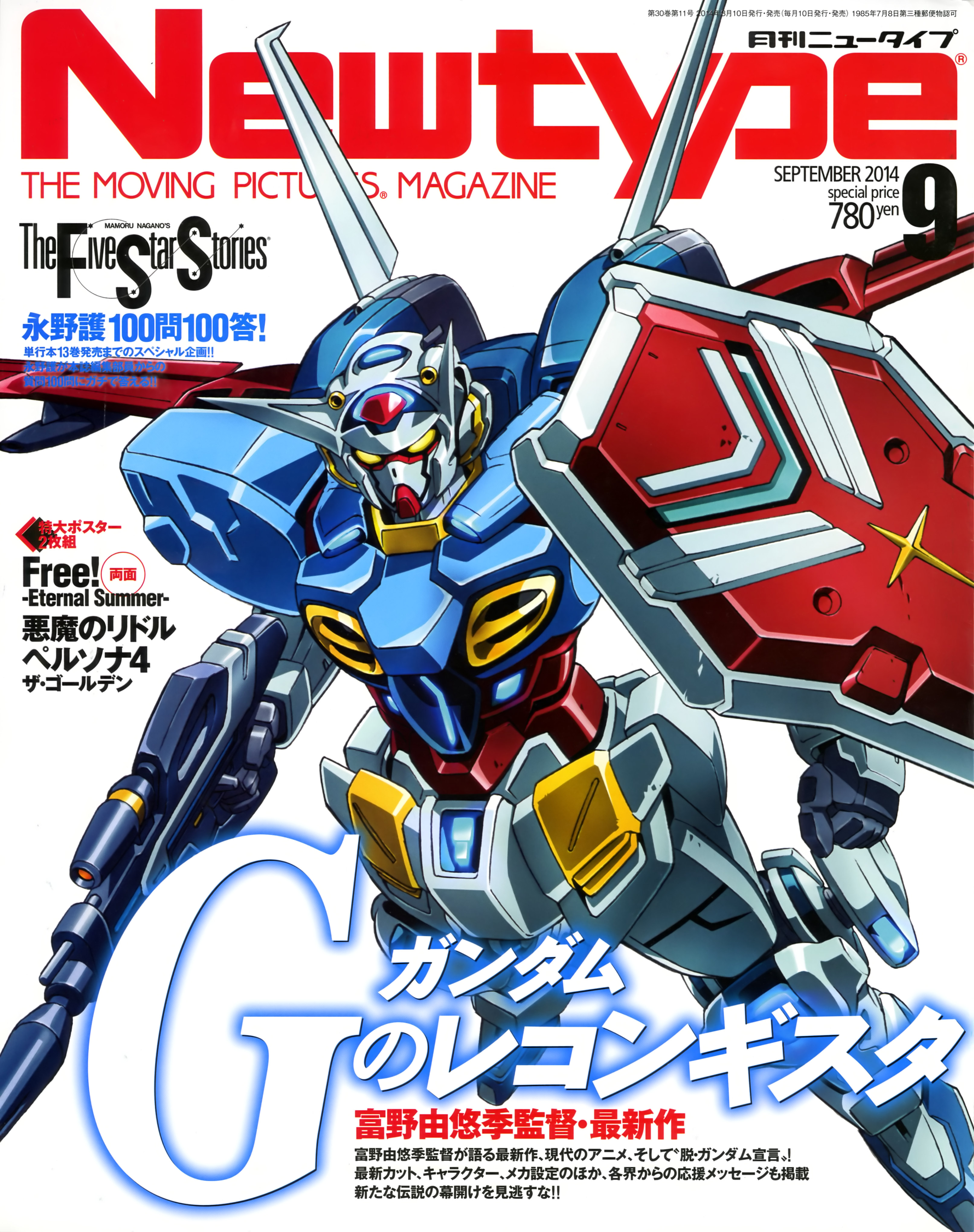 2014 absurdres beam_rifle cover dated derivative_work energy_gun g-self gundam gundam_g_no_reconguista highres machinery magazine_cover mecha mecha_focus mixed-language_text mobile_suit nakatani_seiichi no_humans official_art promotional_art robot science_fiction shield title translation_request v-fin weapon