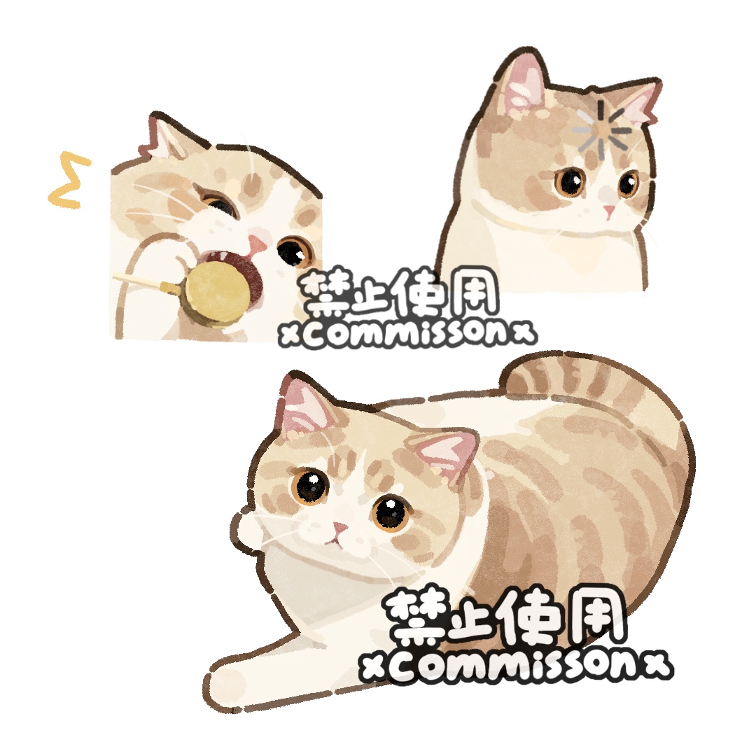 ^^^ american_shorthair animal animal_focus candy cat commission cropped_head eating food full_body loading_icon lollipop looking_at_viewer lying multiple_views no_humans on_side open_mouth orange_eyes original simple_background solo_focus tabby_cat watermark white_background xiao_bo_kuai_kuai yellow_cat