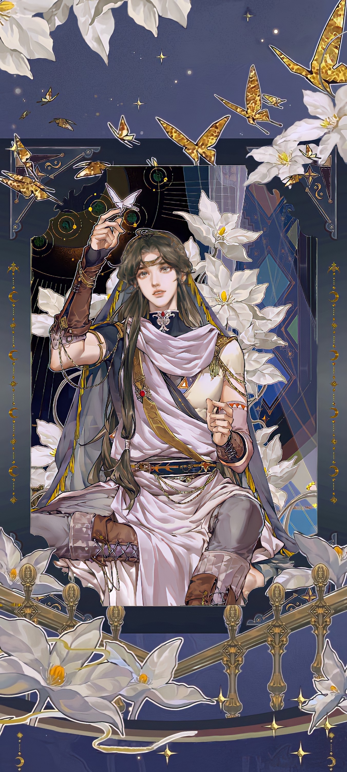 &{ID:13152683 CreatedAt:Sat Dec 20 13:30:44 -0600 2025 Score:0 Width:1352 Height:3000 MD5:5dd7d4bacf14f444c5819837660c4080 Directory:5d/d7 Image:5dd7d4bacf14f444c5819837660c4080.jpg Rating:general Source:https://weibo.com/5494277271/NvRDAqtQd Change:1766259045 Owner:danbooru CreatorID:6498 ParentID:0 Sample:1 PreviewHeight:350 PreviewWidth:157 Tags:1boy absurdres adapted_costume arabian_clothes belt black_belt black_hair black_shirt blue_background blue_veil boots bracelet brown_boots brown_eyes brown_hair bug butterfly butterfly_on_hand chinese_clothes circlet detached_sleeves flower full_body grey_pants hand_up highres insect jewelry long_hair lotus low-tied_sidelocks male_focus official_art pants parted_lips robe scarf shirt shoulder_belt sidelocks sitting solo sparkle starember third-party_source tianguan_cifu turtleneck veil water white_butterfly white_flower white_robe white_scarf xie_lian yellow_butterfly Title: HasNotes:false HasComments:false FileURL:https://img2.gelbooru.com/images/5d/d7/5dd7d4bacf14f444c5819837660c4080.jpg PreviewURL:https://gelbooru.com/thumbnails/5d/d7/thumbnail_5dd7d4bacf14f444c5819837660c4080.jpg SampleURL:https://img2.gelbooru.com/samples/5d/d7/sample_5dd7d4bacf14f444c5819837660c4080.jpg SampleHeight:1886 SampleWidth:850 Status:active PostLocked:0 HasChildren:false IsVideo:false DisplayDate:20.12.2025 13:30}