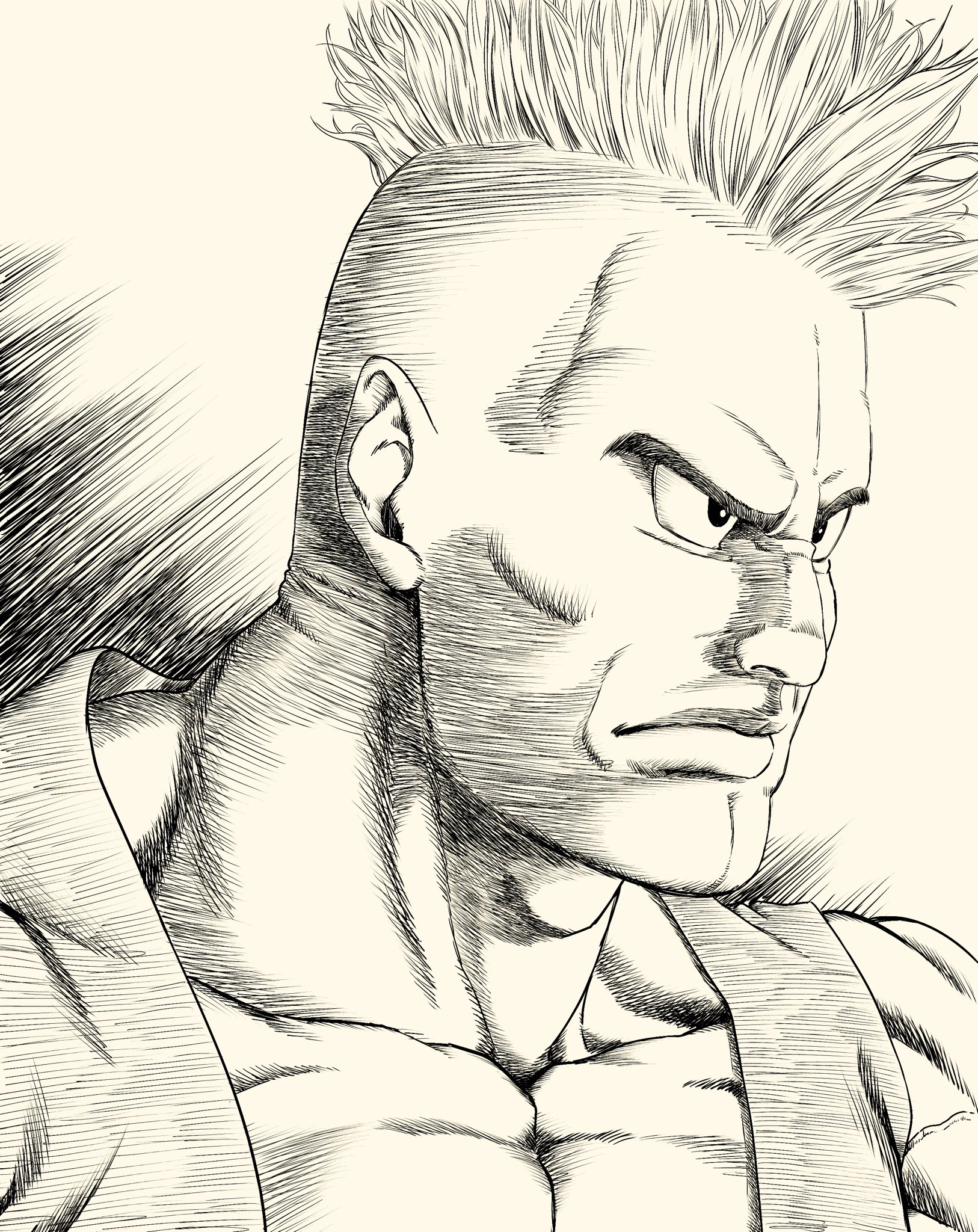 1boy adam's_apple cleft_chin commentary dragon_quest dragon_quest_vi frown furrowed_brow hassan_(dq6) hatching_(texture) highres lee_(dragon_garou) male_focus mohawk muscular muscular_male official_style pectorals portrait profile solo v-shaped_eyebrows
