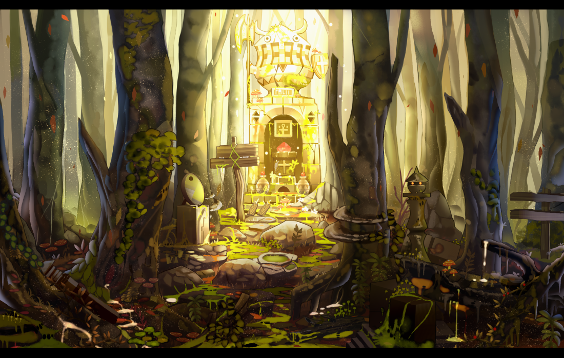apokarihardcore branch commentary_request fantasy forest letterboxed mushroom nature no_humans original outdoors scenery tree