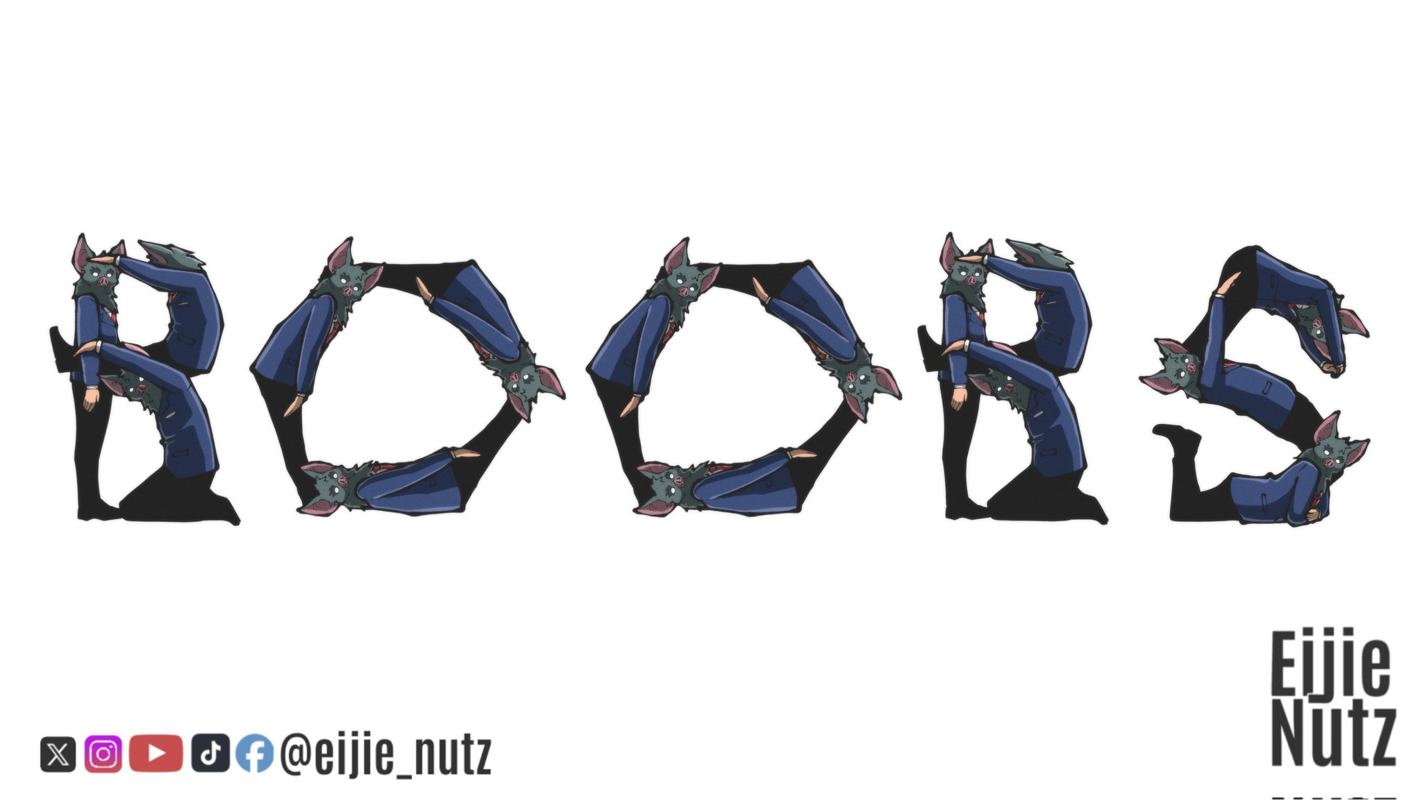 animal_ears bat_boy bat_ears black_pants black_shoes blue_suit clone commentary dispatch eijie_nutz english_commentary english_text formal_clothes grey_fur highres looking_at_viewer multiple_boys necktie no_pupils pants red_necktie shoes simple_background sonar_(dispatch) suit twitter_username white_background white_eyes