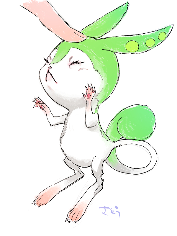 1other :< blush closed_eyes commentary_request creature creature_focus full_body mori06 simple_background utau voiceroid white_background zundamon zundamon_(utau)