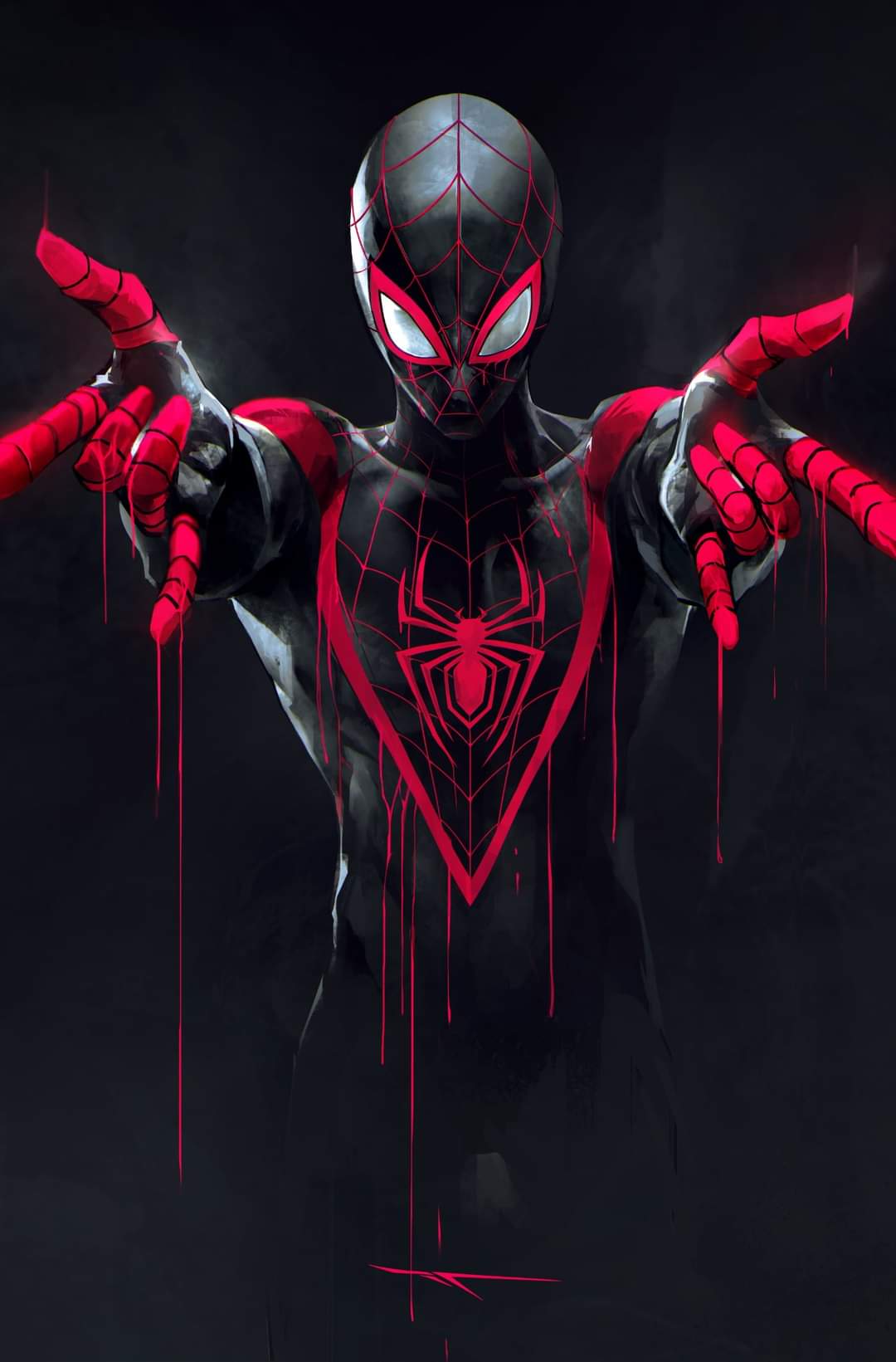 1boy animal_print asymmetrical_hair bodysuit highres ivan_tao male_focus marvel miles_morales multicolored_bodysuit print_bodysuit sidecut solo spider-man:_across_the_spider-verse spider-man_(miles_morales) spider-man_(series) spider-verse spider_print spider_web_print superhero_costume two-tone_bodysuit undercut