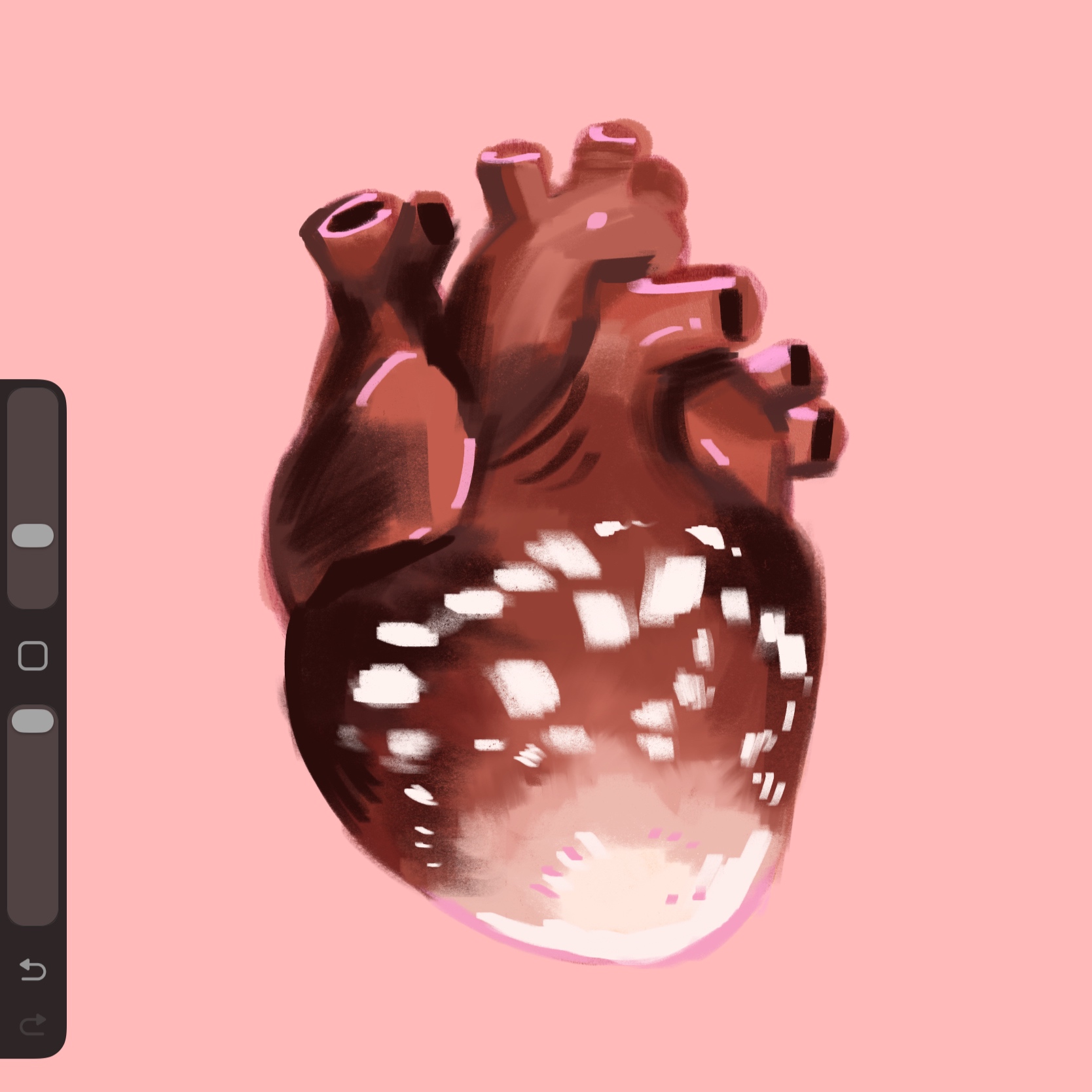 alt_text animal_print art_program_in_frame baby_animal blurry brown_fur commentary deer deer_print english_commentary fawn heart_(organ) highres limited_palette meyoco no_humans object_focus original pink_background pink_light procreate_(medium) simple_background sketch warm_colored