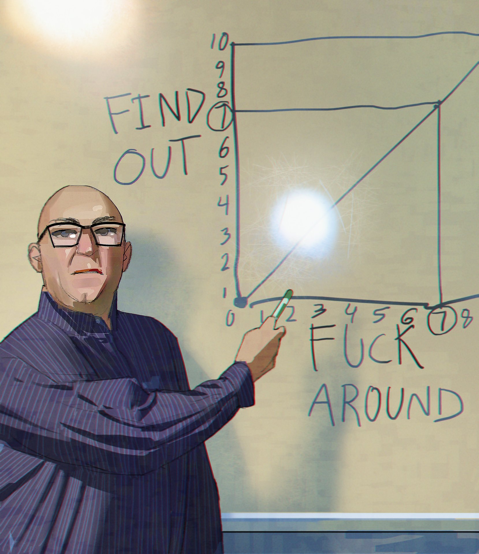 1boy bald blue_shirt english_text glasses highres holding holding_marker looking_afar male_focus marker mature_male meme original ramon_nunez shirt striped_clothes striped_shirt whiteboard