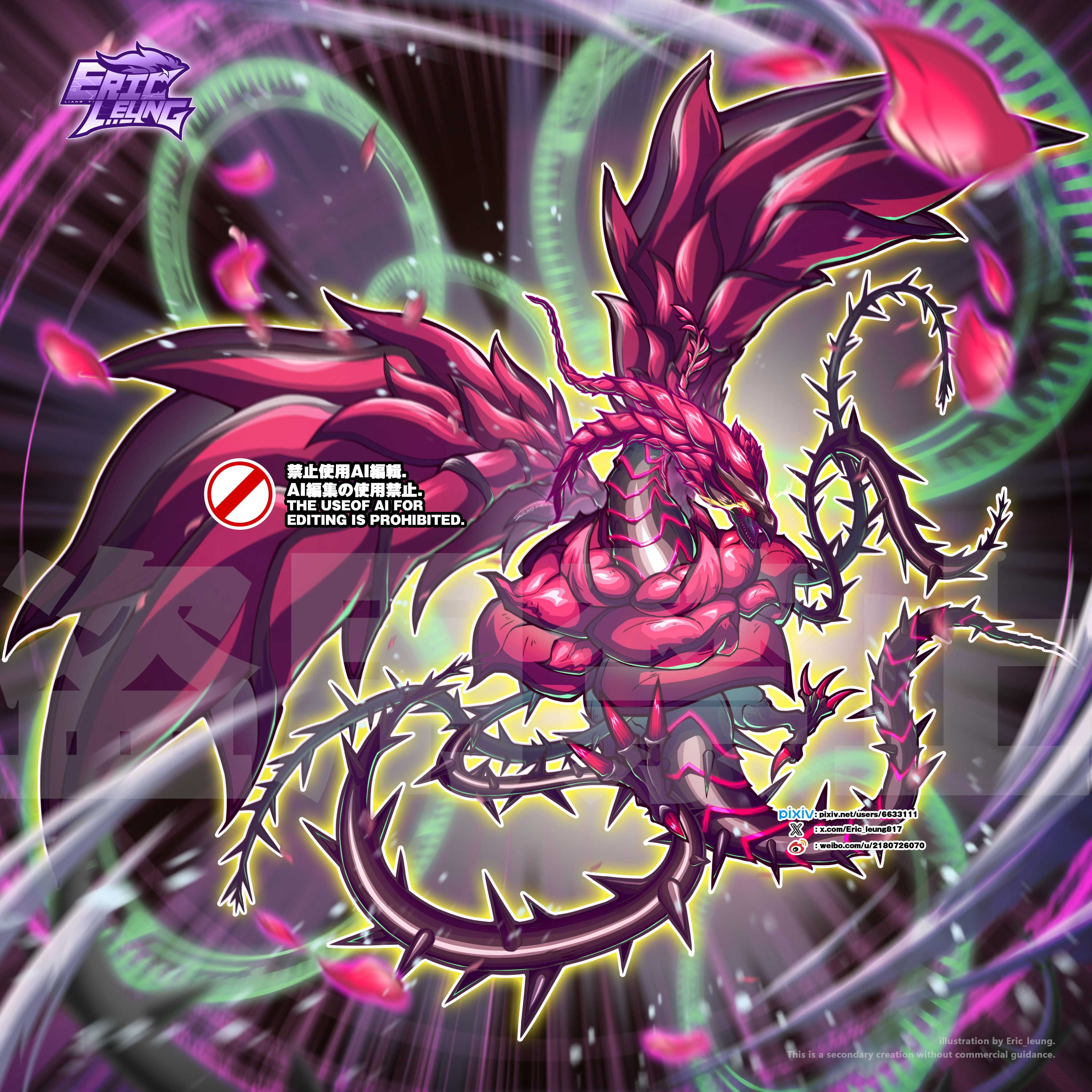 absurdres black_rose_dragon blurry blurry_background commentary_request dragon duel eric_leung274389310 full_body highres no_humans petals red_petals red_wings solo wings yellow_eyes yu-gi-oh!