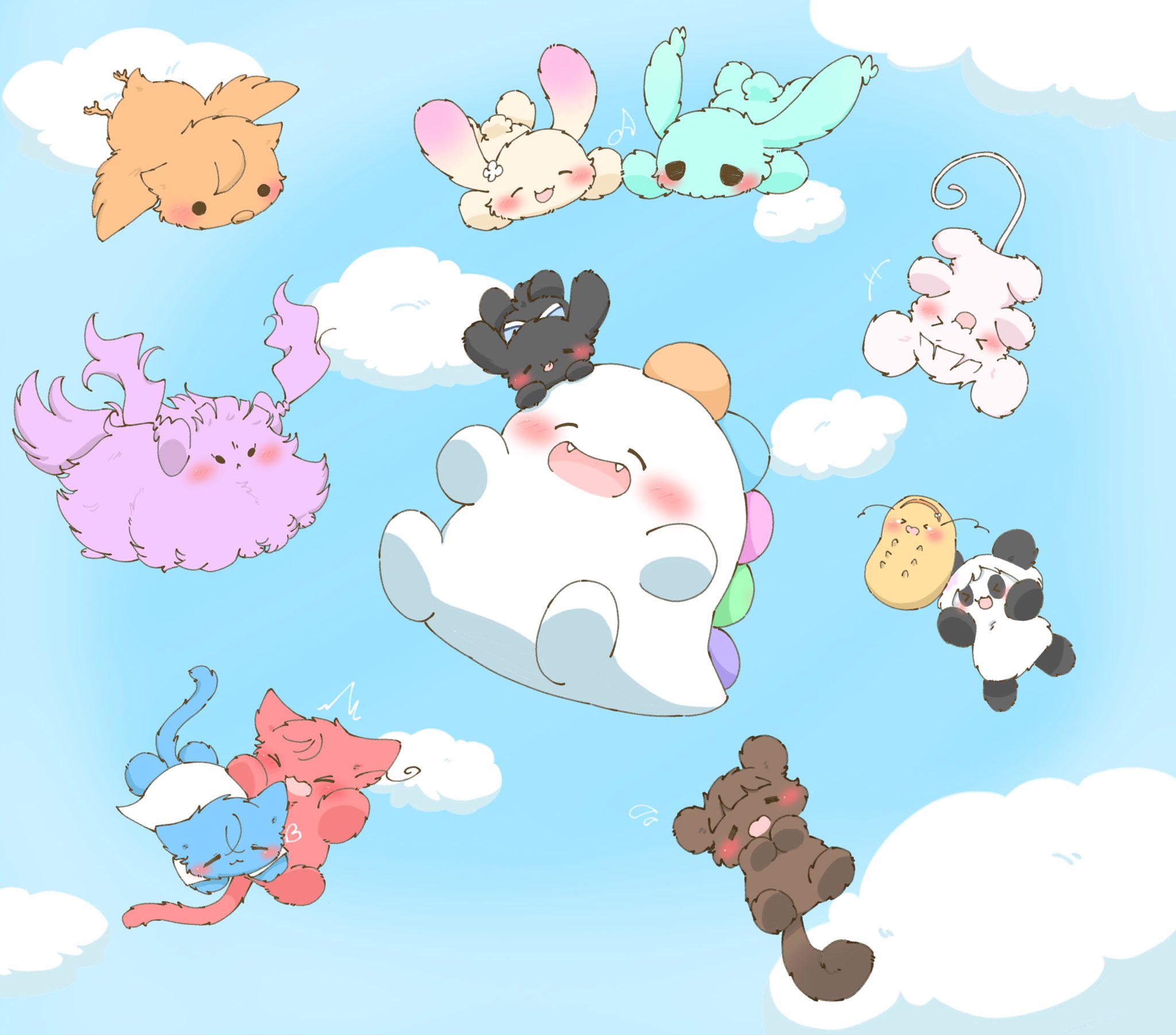 >_< +++ :3 :d animalization bird blue_cat blue_sky cat cloud commentary_request day dinosaur dog dolce_(love_live!) fangs highres isopod lop_rabbit love_live! love_live!_superstar!! maltese mormot_(hamuni_naritai_) no_humans open_mouth outdoors owl panda rabbit red_cat sky smile squirrel x3 xd yuigao