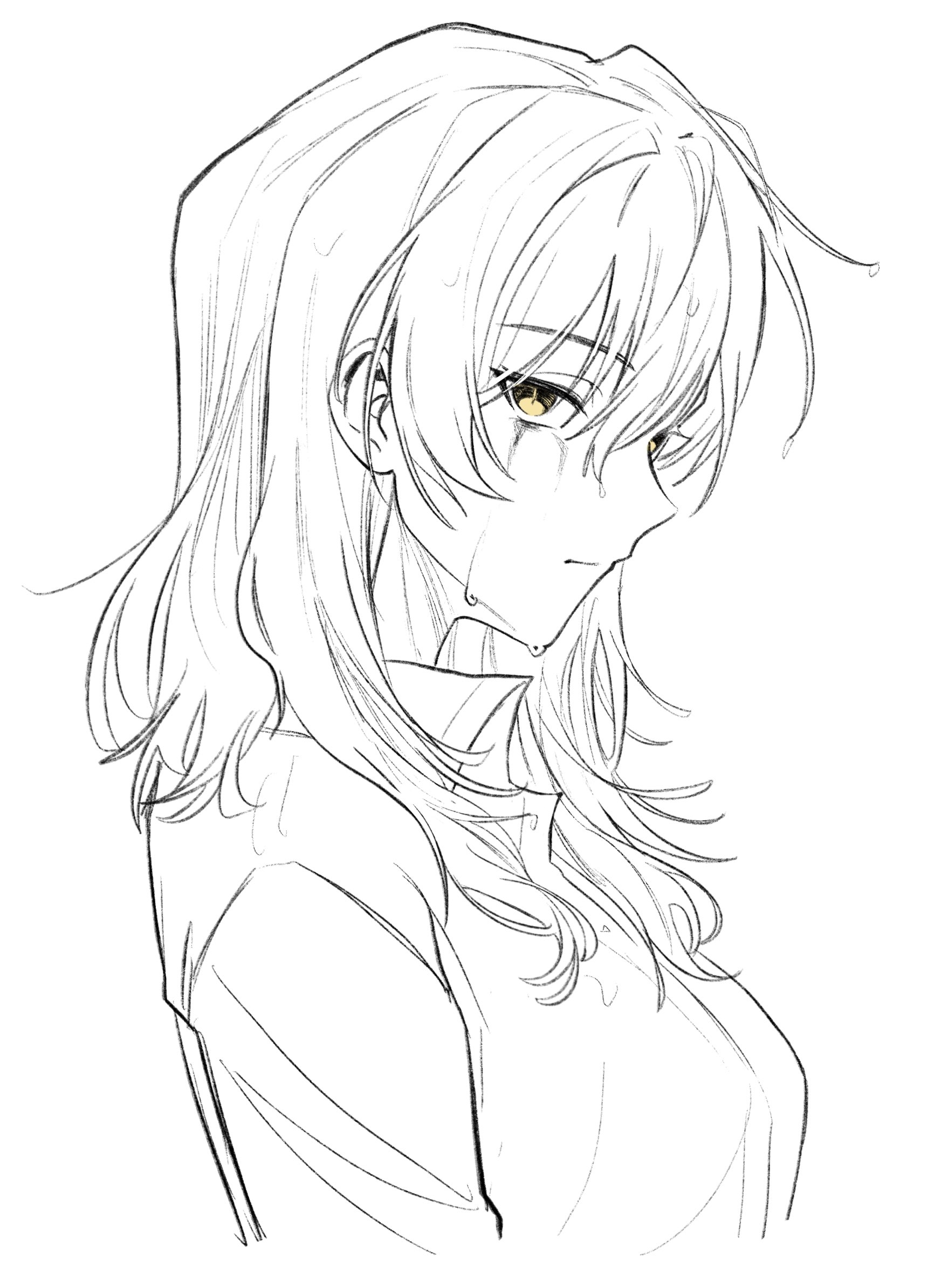 1girl bang_dream! bang_dream!_it's_mygo!!!!! chinese_commentary commentary_request dress_shirt hair_between_eyes hero45439083942 highres original shirt simple_background solo spot_color togawa_hazuki upper_body wet white_background yellow_eyes