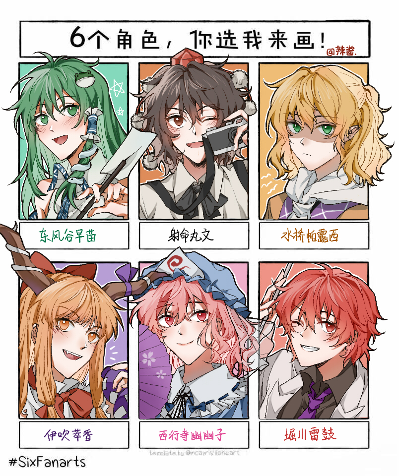 6+girls black_bow black_bowtie black_skirt blonde_hair blue_hat blue_kimono bow bowtie brown_eyes brown_hair brown_horns camera chinese_commentary chinese_text closed_mouth collared_shirt commentary_request detached_sleeves folding_fan frog_hair_ornament gohei gourd green_eyes green_hair grin hair_ornament hair_tubes hand_fan hat hitte5416 holding holding_camera holding_fan holding_gohei holding_gourd horikawa_raiko horn_ornament horn_ribbon horns ibuki_suika jacket japanese_clothes kimono kochiya_sanae looking_at_viewer mizuhashi_parsee mob_cap multiple_girls necktie one_eye_closed oni open_mouth pink_eyes pink_hair pointy_ears pom_pom_(clothes) purple_necktie red_bow red_bowtie red_eyes red_hair ribbon saigyouji_yuyuko scarf shaded_face shameimaru_aya shirt single_hair_tube skirt smile snake_hair_ornament tokin_hat touhou translation_request triangular_headpiece white_jacket white_scarf white_shirt yellow_eyes
