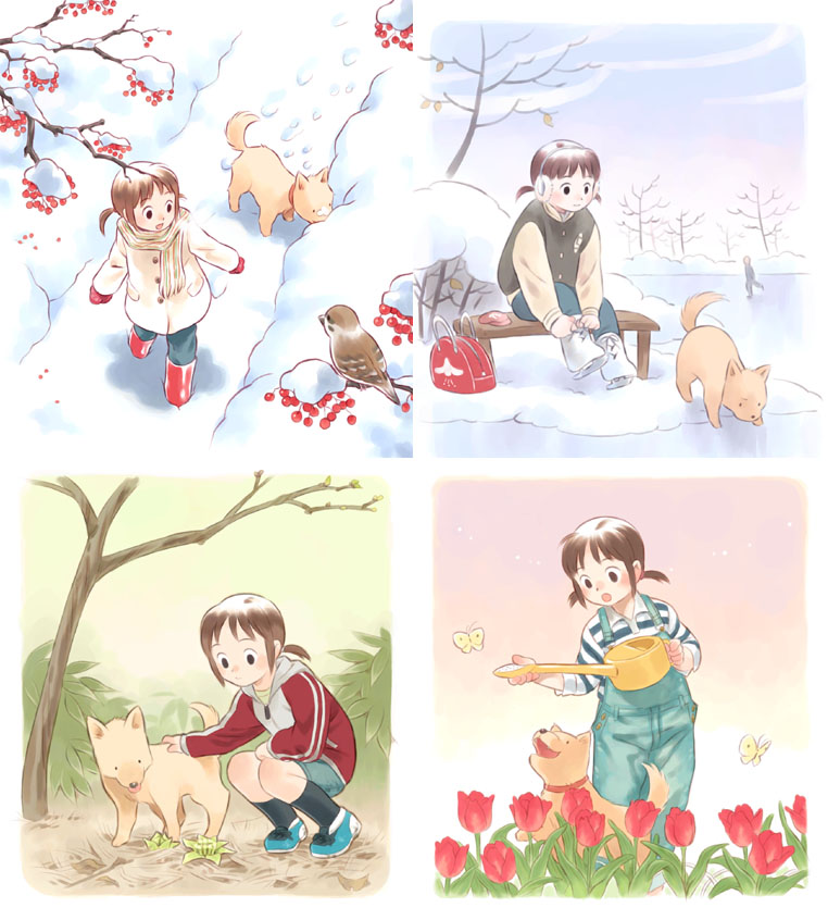 1other 4girls :o ambiguous_gender animal_collar ankle_boots bad_id bag bare_tree bench bird_request black_eyes black_jacket black_socks blue_overalls blue_pants blue_shirt blue_shorts blue_sky blue_sleeves blue_snake blueberry blunt_bangs blush boots branch breath brown_fur brown_hair brown_tail bug bush butterfly buttons closed_mouth coat collar collared_jacket collared_shirt colorful commentary_request contrast_collar crew_neck dated_commentary day denim denim_shorts dirt dot_nose downturned_eyes earmuffs flower food footprints from_above frozen_lake fruit full_body green_sky handbag holding holding_watering_can hood hood_down hooded_jacket ice ice_skates ice_skating insect jacket kneehighs koike_sadaji laces leaf letterman_jacket long_sleeves looking_at_another low_twintails mittens multicolored_jacket multiple_girls nose_blush on_bench open_mouth original outdoors overalls pants perched pink_sky pocket polo_shirt red_bag red_boots red_collar red_flower red_jacket red_mittens red_sleeves red_tulip rubber_boots scarf shirt short_hair short_twintails shorts sidelocks sitting skates skating sky sleeve_cuffs smile snow snow_on_branch snow_on_face socks spring_(season) squatting star_(sky) starry_sky striped_clothes striped_shirt striped_sleeves t-shirt three-quarter_sleeves tree tulip twintails two-tone_jacket two-tone_shirt two-tone_sleeves tying undershirt uneven_overalls vertical-striped_sleeves walking watering_can white_boots white_coat white_hood white_jacket white_scarf white_shirt white_sleeves wing_collar winter winter_clothes wooden_bench yellow_butterfly yellow_sleeves zipper_pull_tab