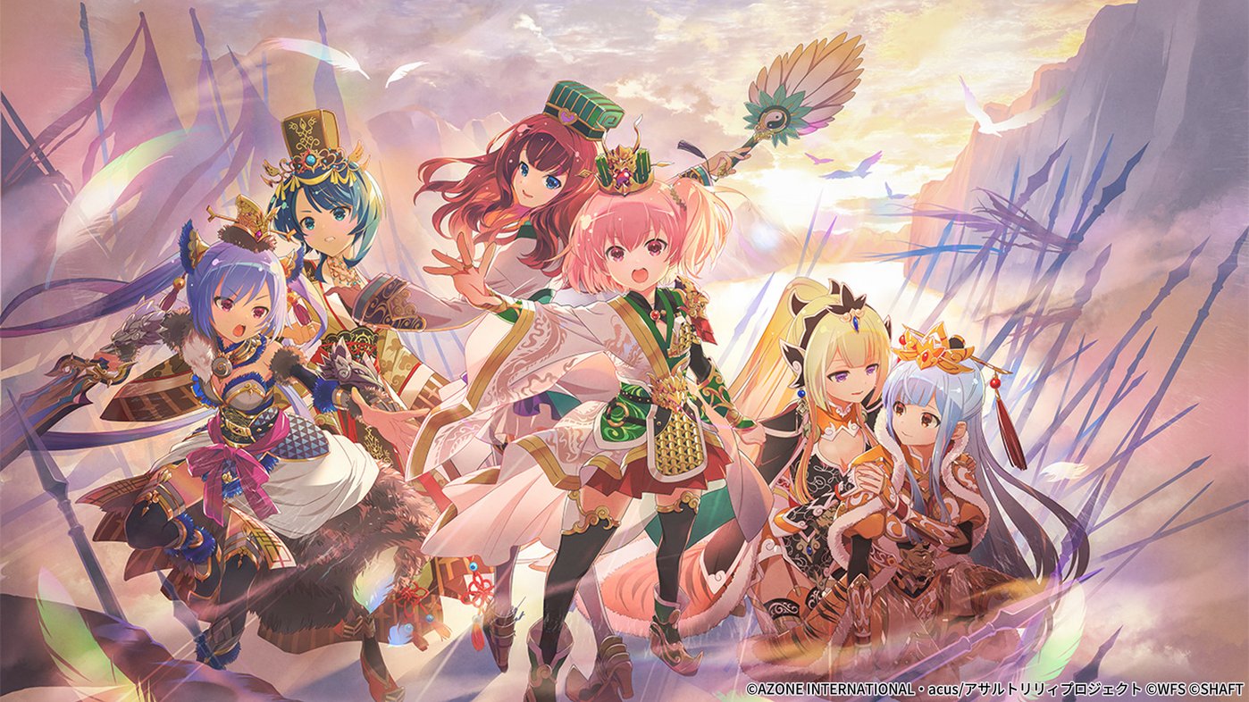 6+girls aizawa_kazuha arm_at_side assault_lily battle_standard bird black_cape black_dress black_hairband black_thighhighs blonde_hair blue_eyes blue_gem blunt_bangs boobplate boots bow breastplate breasts brown_hair cape capelet chinese_clothes clenched_teeth cloud commentary_request copyright_logo detached_sleeves dove dress evening falling_feathers feather_fan feathers fengguan flag floating_hair fur-trimmed_cape fur-trimmed_capelet fur-trimmed_dress fur-trimmed_sleeves fur_trim garter_straps gem gold_trim green_boots green_hat grey_hair guan_hat guanjin hair_ornament hairband hand_fan hand_up hands_up hanfu hat high_ponytail hitotsuyanagi_riri holding holding_fan holding_hands holding_sword holding_weapon hosoi_mieko jewelry jin_(headwear) kaede_johan_nouvel kon_kanaho logo long_hair long_sleeves looking_ahead looking_at_another looking_at_viewer looking_to_the_side matsumura_fuuka medium_breasts miyagawa_takane multiple_girls official_alternate_costume official_alternate_hairstyle official_art one_side_up open_mouth orange_cape orange_dress outstretched_arm parted_lips pink_bow pink_eyes pink_hair polearm ponytail purple_eyes purple_hair ring short_hair sidelocks sitting smile spear standing standing_on_one_leg sunlight sword tassel tassel_hair_ornament teeth thighhighs twintails v-shaped_eyebrows vambraces very_long_hair war_flag wavy_hair weapon white_dress wide_sleeves yellow_capelet yellow_eyes yellow_hat yuri