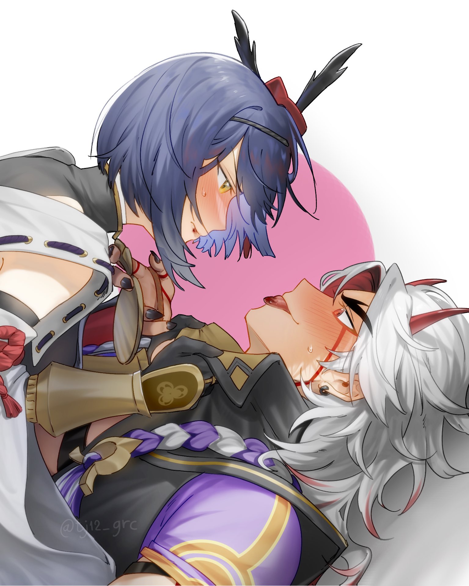 &{ID:13277000 CreatedAt:Sat Jan 10 15:30:37 -0600 2026 Score:1 Width:1535 Height:1919 MD5:653876ea2061b07972916738ec89a865 Directory:65/38 Image:653876ea2061b07972916738ec89a865.jpg Rating:general Source:https://twitter.com/tj12_grc/status/1469355950150602758 Change:1768080638 Owner:danbooru CreatorID:6498 ParentID:0 Sample:1 PreviewHeight:350 PreviewWidth:279 Tags:1boy 1girl arataki_itto arm_guards bird_mask black_bodysuit black_gloves black_nails black_shirt blood_on_mouth blood_on_tongue blush bodysuit circle closed_mouth colored_inner_hair commentary earrings english_commentary facial_mark genshin_impact gloves highres holding_medal horns japanese_clothes jewelry kujou_sara long_hair looking_at_another lying mask mask_on_head multicolored_hair on_back oni profile purple_hair red_eyes red_hair red_horns red_mask red_rope rope shirt short_hair smile sweatdrop tengu_mask thick_eyebrows tongue tongue_out twitter_username two-tone_hair unholymilk upper_body variant_set white_background white_hair wide_sleeves yellow_eyes Title: HasNotes:false HasComments:false FileURL:https://img2.gelbooru.com/images/65/38/653876ea2061b07972916738ec89a865.jpg PreviewURL:https://gelbooru.com/thumbnails/65/38/thumbnail_653876ea2061b07972916738ec89a865.jpg SampleURL:https://img2.gelbooru.com/samples/65/38/sample_653876ea2061b07972916738ec89a865.jpg SampleHeight:1063 SampleWidth:850 Status:active PostLocked:0 HasChildren:false IsVideo:false DisplayDate:10.01.2026 15:30}