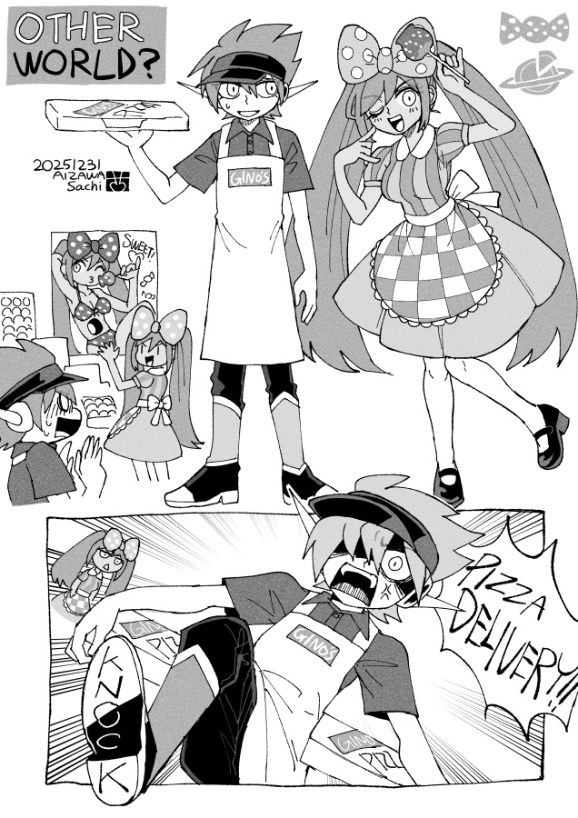 &{ID:13278491 CreatedAt:Sat Jan 10 22:00:41 -0600 2026 Score:0 Width:636 Height:900 MD5:020fa6e743c932a645c4b842e4aa73a9 Directory:02/0f Image:020fa6e743c932a645c4b842e4aa73a9.jpg Rating:general Source:https://twitter.com/sachichy/status/2006245266022895866 Change:1768104041 Owner:danbooru CreatorID:6498 ParentID:0 Sample:0 PreviewHeight:350 PreviewWidth:247 Tags:1boy 1girl aizawa_sachi alternate_costume apron arm_up blush boots bow box braid breasts captain_spaceboy collared_shirt commentary_request dark-skinned_female dark_skin english_text greyscale hair_between_eyes hair_bow hair_over_one_eye holding holding_box large_breasts long_hair looking_at_another looking_at_viewer monochrome omori one_eye_closed open_mouth pants pizza_box polka_dot polka_dot_bow puffy_short_sleeves puffy_sleeves shirt shoes short_hair short_sleeves smile speech_bubble sweatdrop sweetheart_(omori) teeth tongue twin_braids twintails upper_teeth_only Title: HasNotes:false HasComments:false FileURL:https://img2.gelbooru.com/images/02/0f/020fa6e743c932a645c4b842e4aa73a9.jpg PreviewURL:https://gelbooru.com/thumbnails/02/0f/thumbnail_020fa6e743c932a645c4b842e4aa73a9.jpg SampleURL: SampleHeight:0 SampleWidth:0 Status:active PostLocked:0 HasChildren:false IsVideo:false DisplayDate:10.01.2026 22:00}