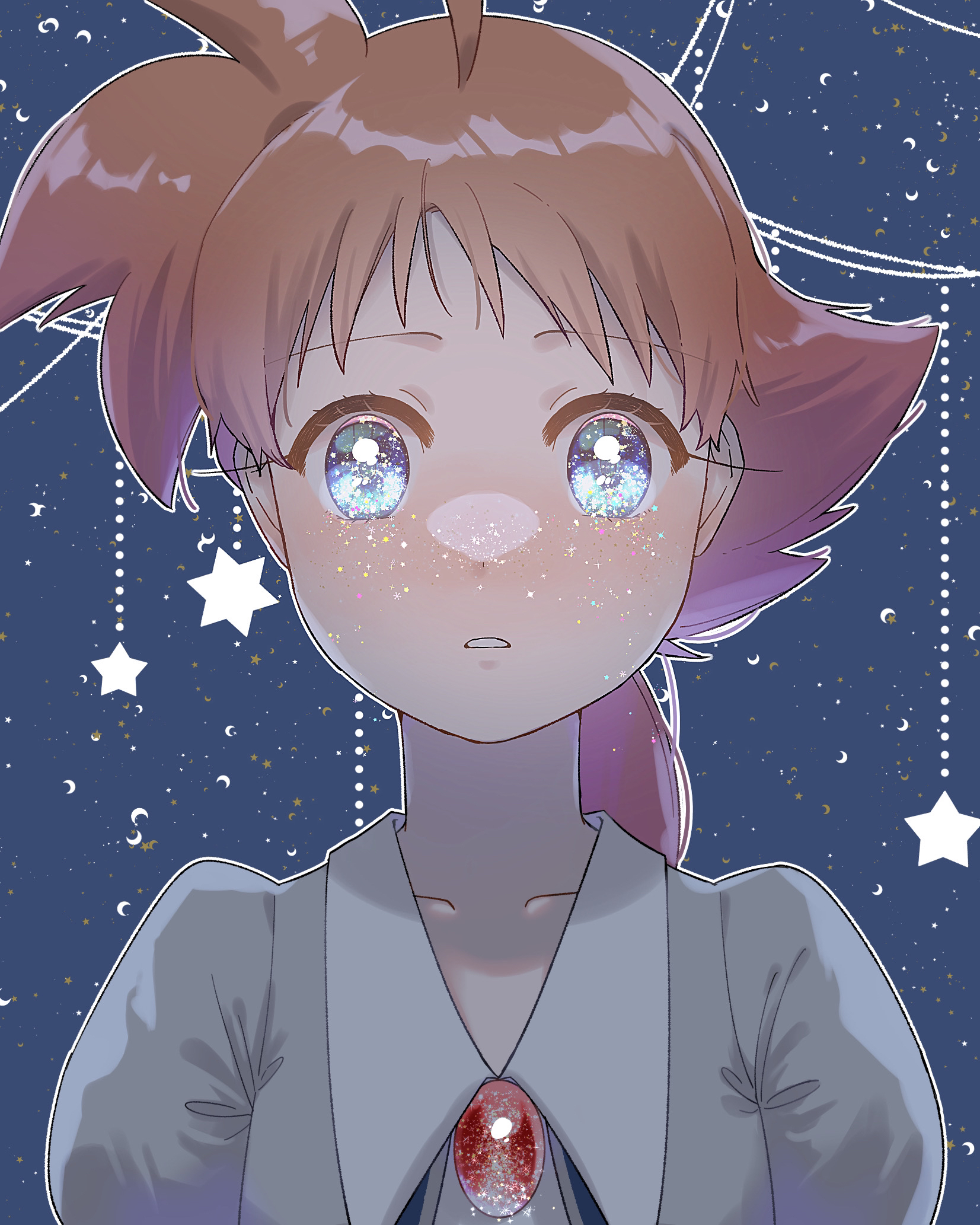 1girl ahiru_(princess_tutu) ahoge blue_eyes commentary_request eyelashes freckles gold_crown_academy_school_uniform harb1106 highres long_hair parted_lips princess_tutu school_uniform solo star_(symbol)
