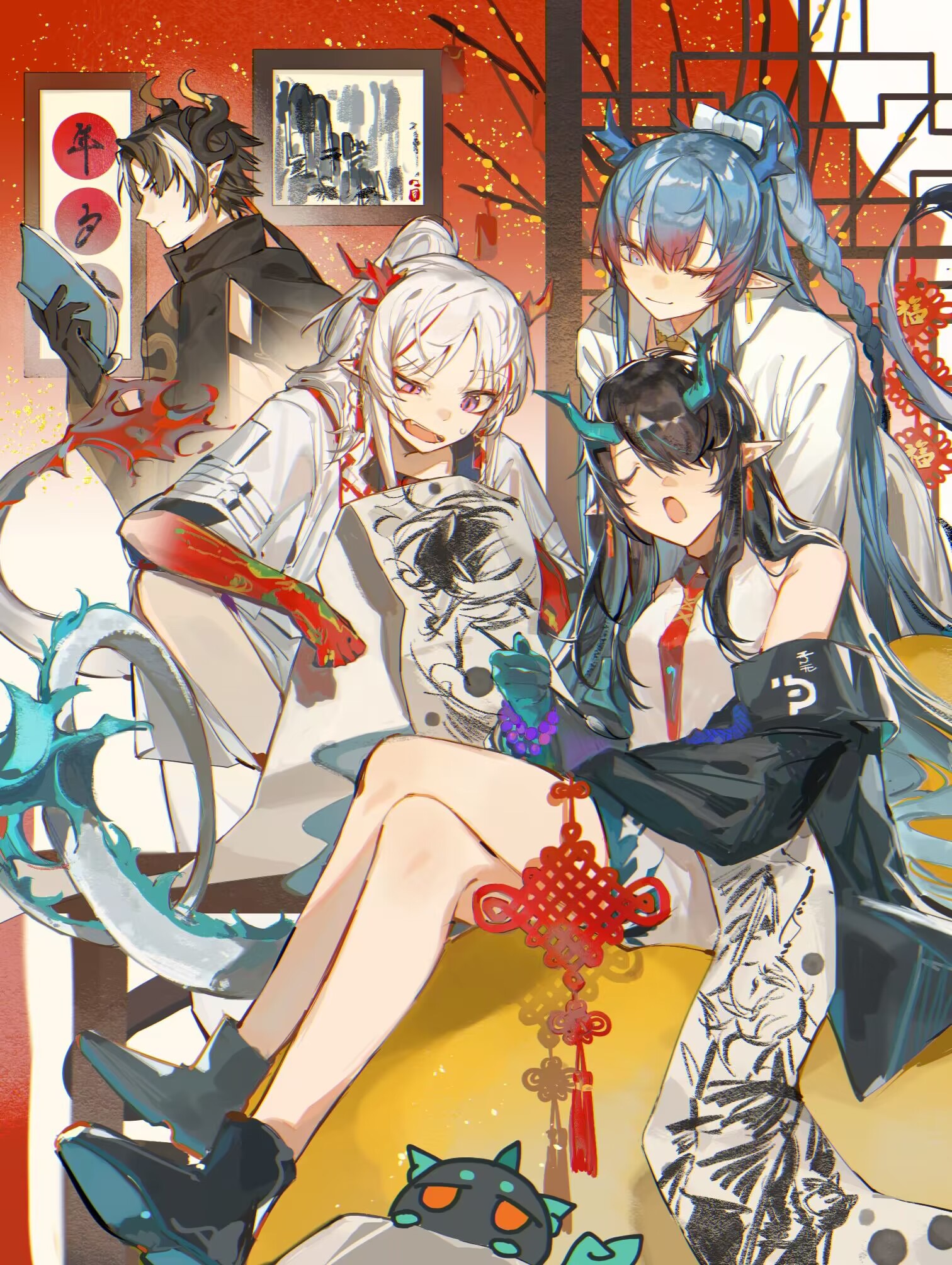&{ID:13285978 CreatedAt:Mon Jan 12 03:45:13 -0600 2026 Score:0 Width:1512 Height:2008 MD5:cd34e4995974bab999df1b987bcc99b2 Directory:cd/34 Image:cd34e4995974bab999df1b987bcc99b2.jpg Rating:general Source:https://kuilaogouhuabudongle.lofter.com/post/1f426c40_2b8406246 Change:1768211113 Owner:danbooru CreatorID:6498 ParentID:0 Sample:1 PreviewHeight:350 PreviewWidth:263 Tags:1boy 3girls arknights black_hair blue_eyes blue_hair chinese_commentary chongyue_(arknights) colored_extremities colored_skin commentary_request dragon_boy dragon_girl dragon_horns dragon_tail dusk_(arknights) earrings eastern_dragon_tail green_hands green_horns green_skin hair_over_one_eye highres horns jewelry kuilaogouhuabudongle ling_(arknights) long_hair multicolored_hair multiple_girls nian_(arknights) pointy_ears purple_eyes streaked_hair tail tassel tassel_earrings white_hair Title: HasNotes:false HasComments:false FileURL:https://img2.gelbooru.com/images/cd/34/cd34e4995974bab999df1b987bcc99b2.jpg PreviewURL:https://gelbooru.com/thumbnails/cd/34/thumbnail_cd34e4995974bab999df1b987bcc99b2.jpg SampleURL:https://img2.gelbooru.com/samples/cd/34/sample_cd34e4995974bab999df1b987bcc99b2.jpg SampleHeight:1129 SampleWidth:850 Status:active PostLocked:0 HasChildren:false IsVideo:false DisplayDate:12.01.2026 03:45}