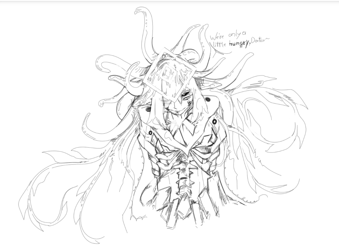 arknights cataclysmicwrath herald_of_we_many monster_girl non-web_source seaborn_(arknights) see-through_body sketch spine tagme tentacle_hair tentacles unfinished