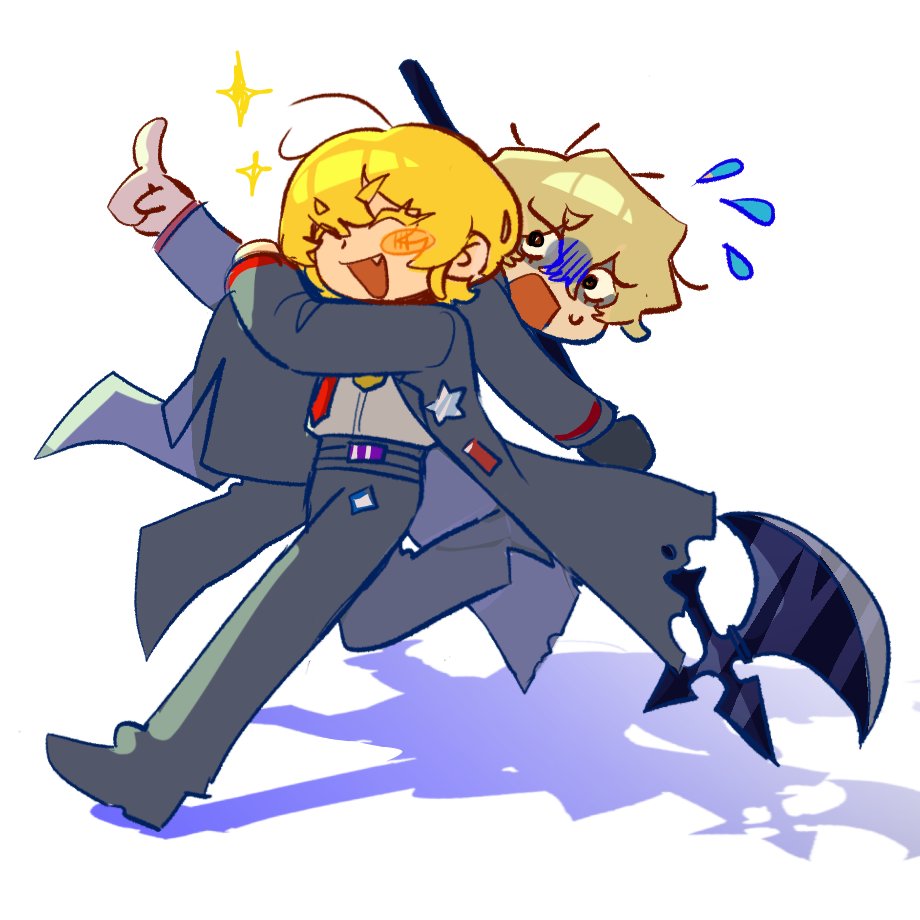 &{ID:13290500 CreatedAt:Mon Jan 12 22:46:14 -0600 2026 Score:0 Width:920 Height:920 MD5:037d29c412b1588a1c772218dcb26be5 Directory:03/7d Image:037d29c412b1588a1c772218dcb26be5.jpg Rating:general Source:https://twitter.com/Shinnigummy/status/2008798202766782728 Change:1768279574 Owner:danbooru CreatorID:6498 ParentID:0 Sample:0 PreviewHeight:350 PreviewWidth:350 Tags:1boy 1girl black_suit blonde_hair carrying_over_shoulder closed_eyes collared_shirt commentary couple don_quixote_(project_moon) english_commentary fang flying_sweatdrops formal_clothes full_body halberd hetero holding holding_polearm holding_weapon limbus_company necktie open_mouth polearm project_moon red_necktie shadow shinnigummy shirt short_hair simple_background sinclair_(project_moon) sparkle suit sweat weapon white_background white_shirt Title: HasNotes:false HasComments:false FileURL:https://img2.gelbooru.com/images/03/7d/037d29c412b1588a1c772218dcb26be5.jpg PreviewURL:https://gelbooru.com/thumbnails/03/7d/thumbnail_037d29c412b1588a1c772218dcb26be5.jpg SampleURL: SampleHeight:0 SampleWidth:0 Status:active PostLocked:0 HasChildren:false IsVideo:false DisplayDate:12.01.2026 22:46}