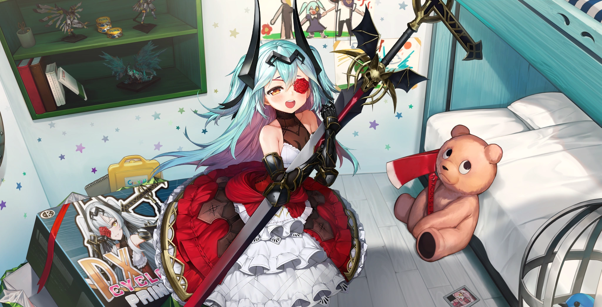 2boys 4girls amy_razor aqua_hair armor axe bare_shoulders bed bed_sheet bird bismarck_corporation_(last_origin) blonde_hair book can candy canned_food canned_tuna child's_drawing commander_(last_origin) cosplay cyclops_princess_(last_origin) cyclops_princess_(last_origin)_(cosplay) drawing eyepatch fire_axe flower food glacias_(last_origin) greaves hair_between_eyes hair_ornament highres jam_(nandade) last_origin lolita_fashion lollipop long_hair long_sword lrl_(last_origin) model multiple_boys multiple_girls paper peregrinus_(last_origin) petals rose_petals scissors see-through_clothes sketchbook sliding_puzzle smile stuffed_animal stuffed_toy teddy_bear two_side_up wallpaper_(object) white_hair yellow_eyes