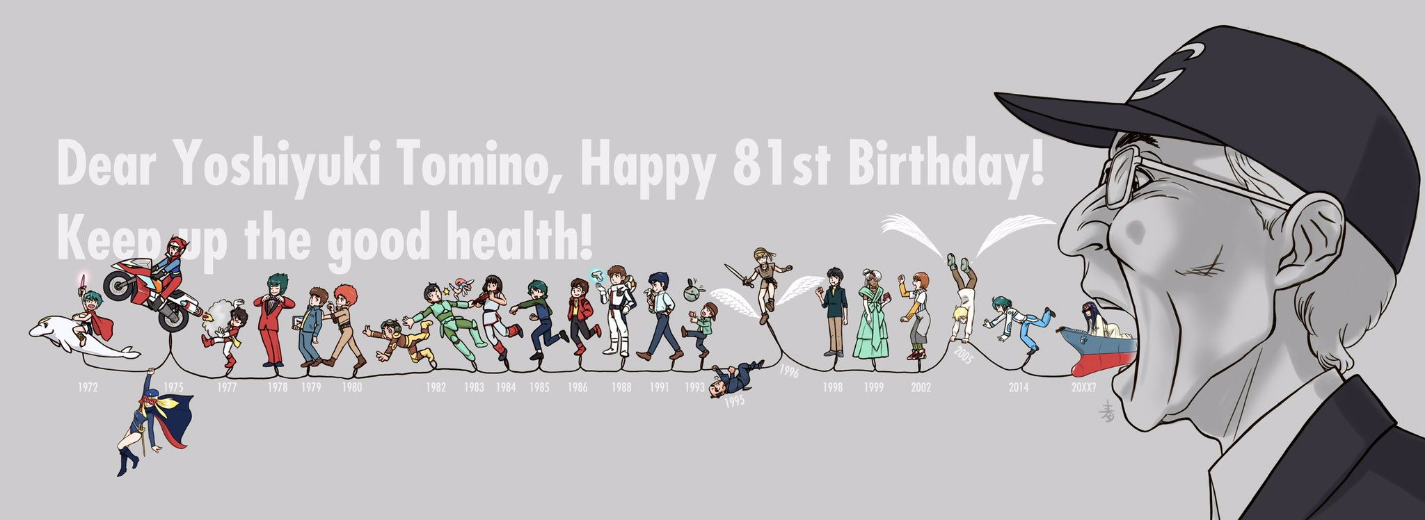 ! 3girls 6+boys ? adjusting_clothes afro amuro_ray aobito_sukoyaka_bystander armor barefoot baseball_cap bellri_zenam black_hair blonde_hair boots bow bowtie brain_powered brown_hair cape cham_fau char's_counterattack character_request copyright_request cosmo_yuki creator_connection crossdressing daba_myroad dagger dark-skinned_male dark_skin densetsu_kyojin_ideon dress eating fairy formal_clothes garzey's_wing glasses gloves goggles goggles_on_head green_hair gundam gundam_f91 gundam_g_no_reconguista gundam_zz hanging happy_birthday haran_banjou haro hat headband helmet hibiki_akira highres jacket jin_kappei jiron_amos judau_ashta juusenki_l-gaim kamille_bidan kicking knife la_seine_no_hoshi loran_cehack mask mini_person minigirl mobile_suit_gundam motor_vehicle motorcycle multiple_boys multiple_girls muteki_choujin_zambot_3 muteki_koujin_daitarn_3 old old_man open_mouth orange_hair overman_king_gainer pilot_suit pink_hair raideen_(series) rean_no_tsubasa riding riding_animal robot seabook_arno seisenshi_dunbine sentou_mecha_xabungle shou_zama simone_(la_seine_no_hoshi) spacecraft spacesuit spiked_hair suit sunrise_(company) sword timeline tomino_yoshiyuki triton tunic turn_a_gundam tuxedo uchuu_senkan_yamato umi_no_triton uso_evin victory_gundam weapon wings yamato_(uchuu_senkan_yamato) yuusha_raideen zeta_gundam