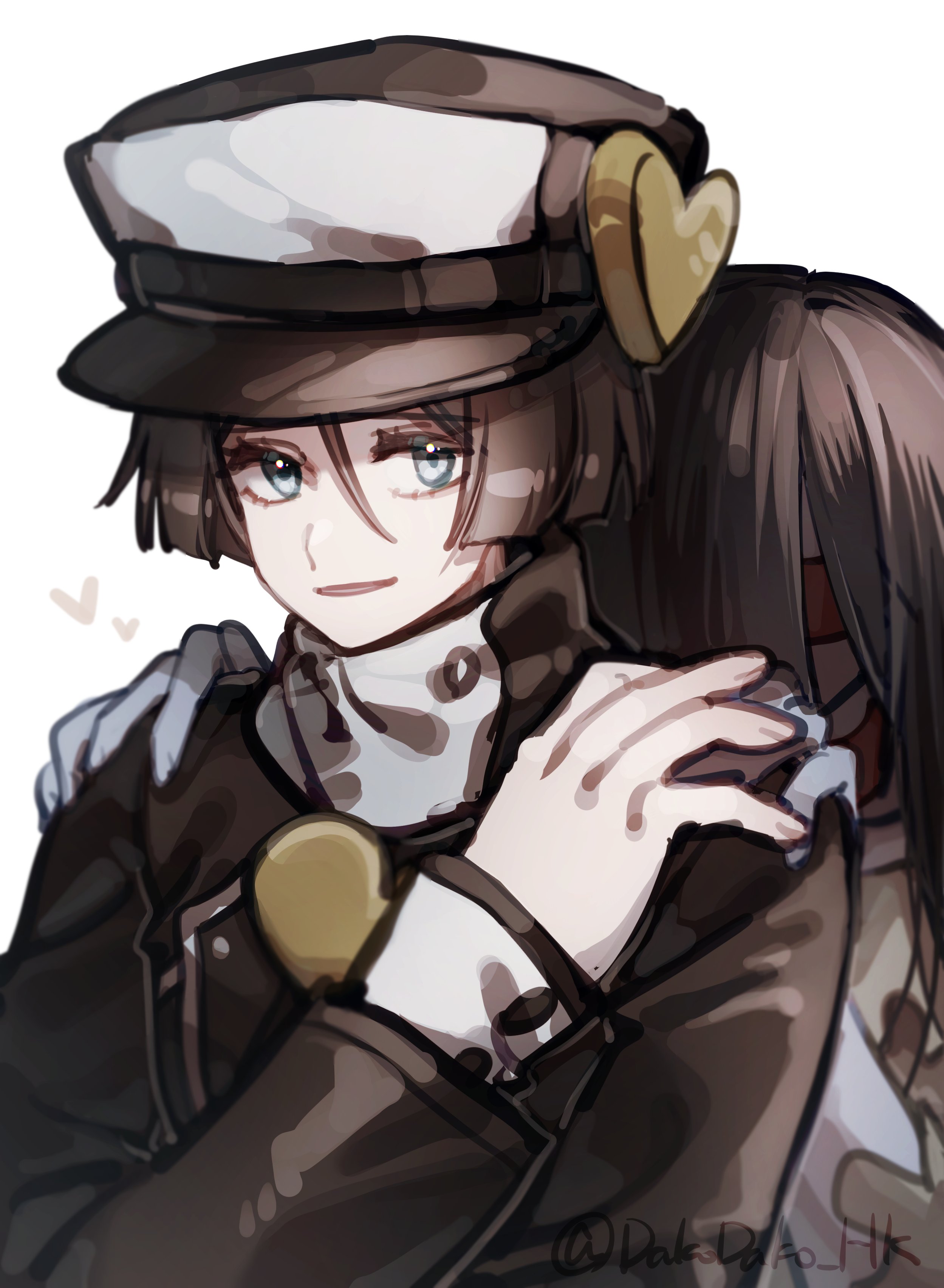 1boy 1girl absurdres black_hair blue_eyes guilty_gear hat heart highres ko_jira long_sleeves pale_skin s-ko short_hair straight_hair zappa