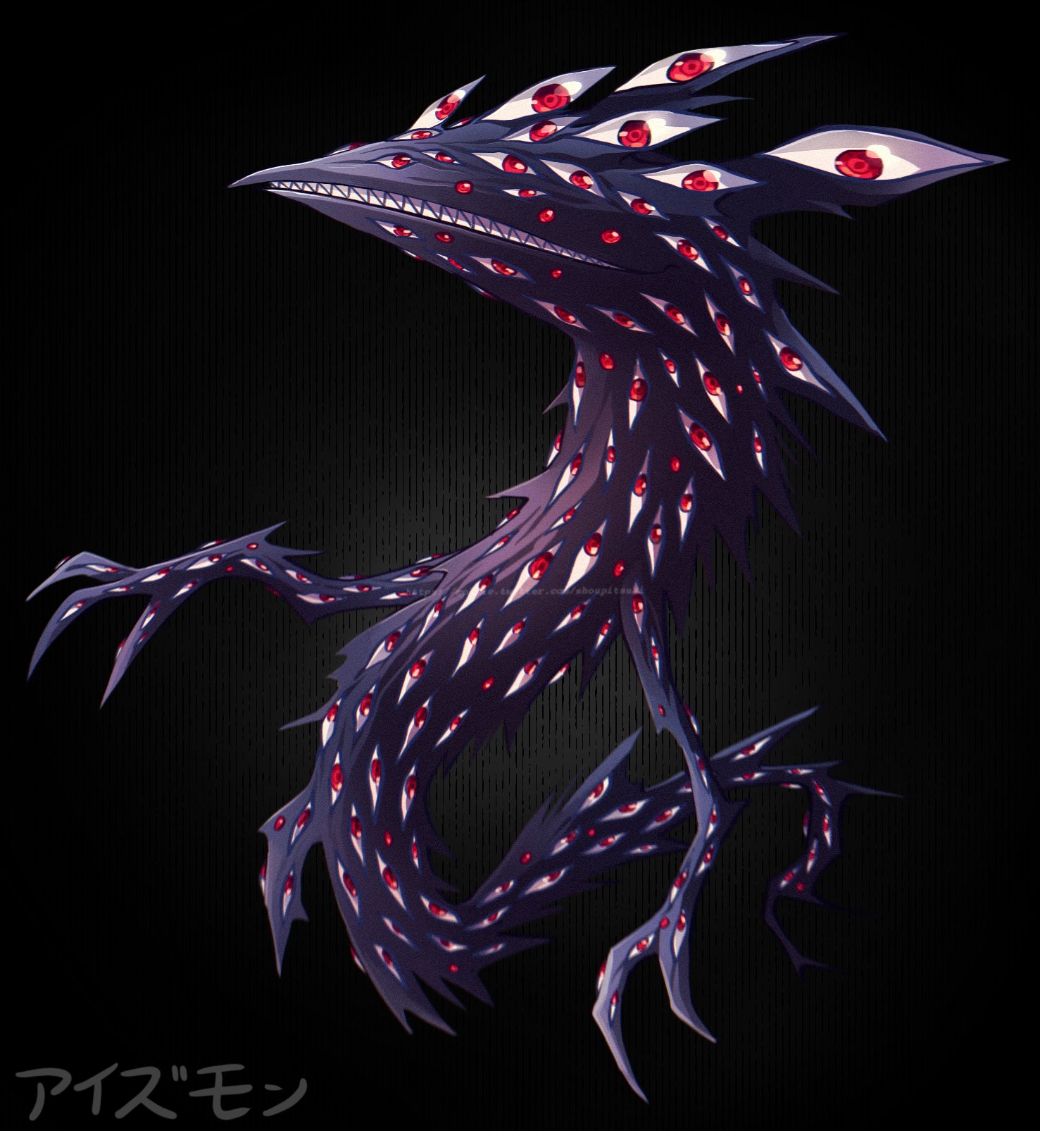 claws digimon digimon_(creature) eyesmon highres red_eyes shadow sharp_teeth solo teeth