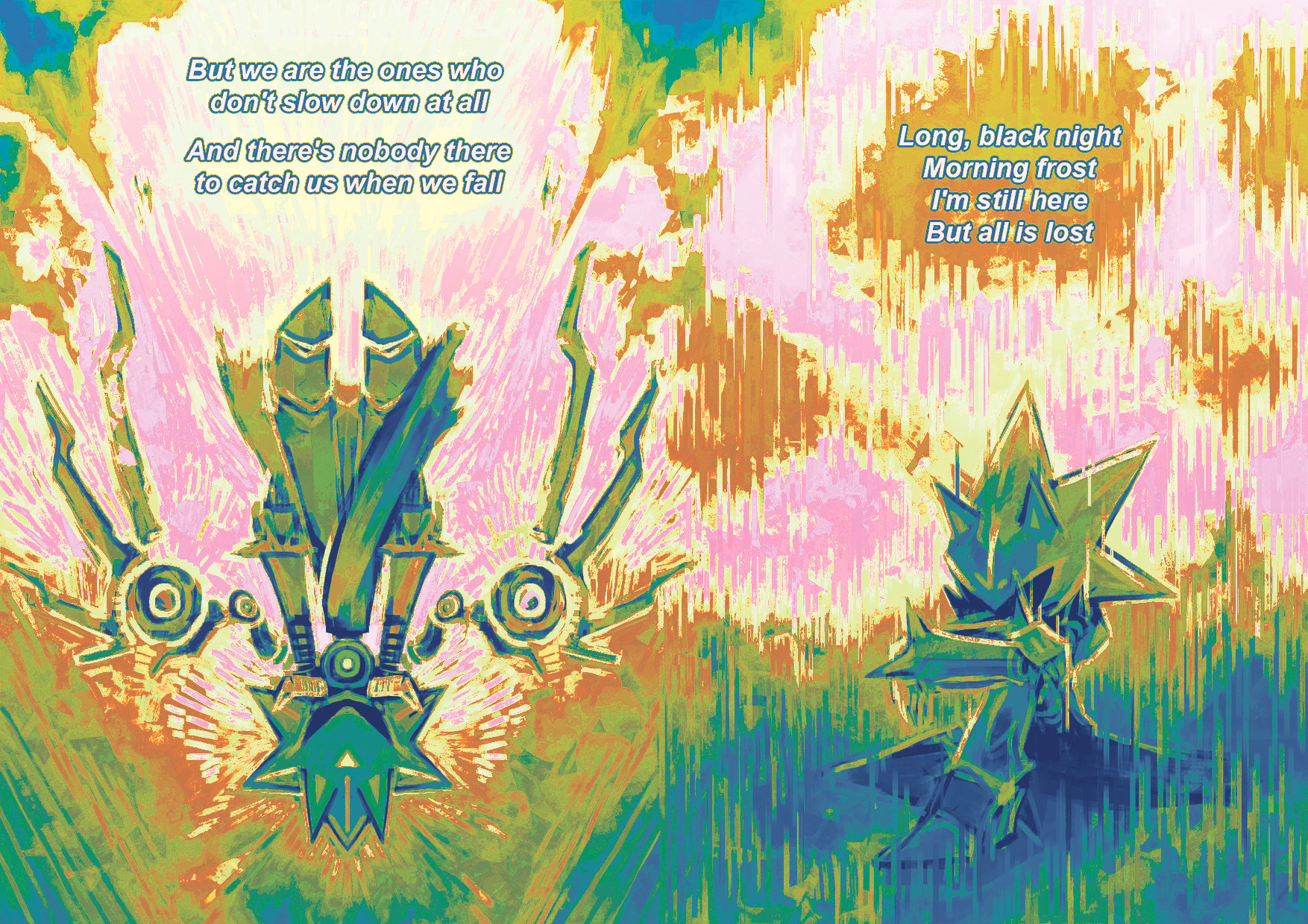 1boy animal_ears commentary english_commentary english_text highres lyrics male_focus metal_sonic neo_metal_sonic robot sitting sonic_(series) upside-down wellspkd
