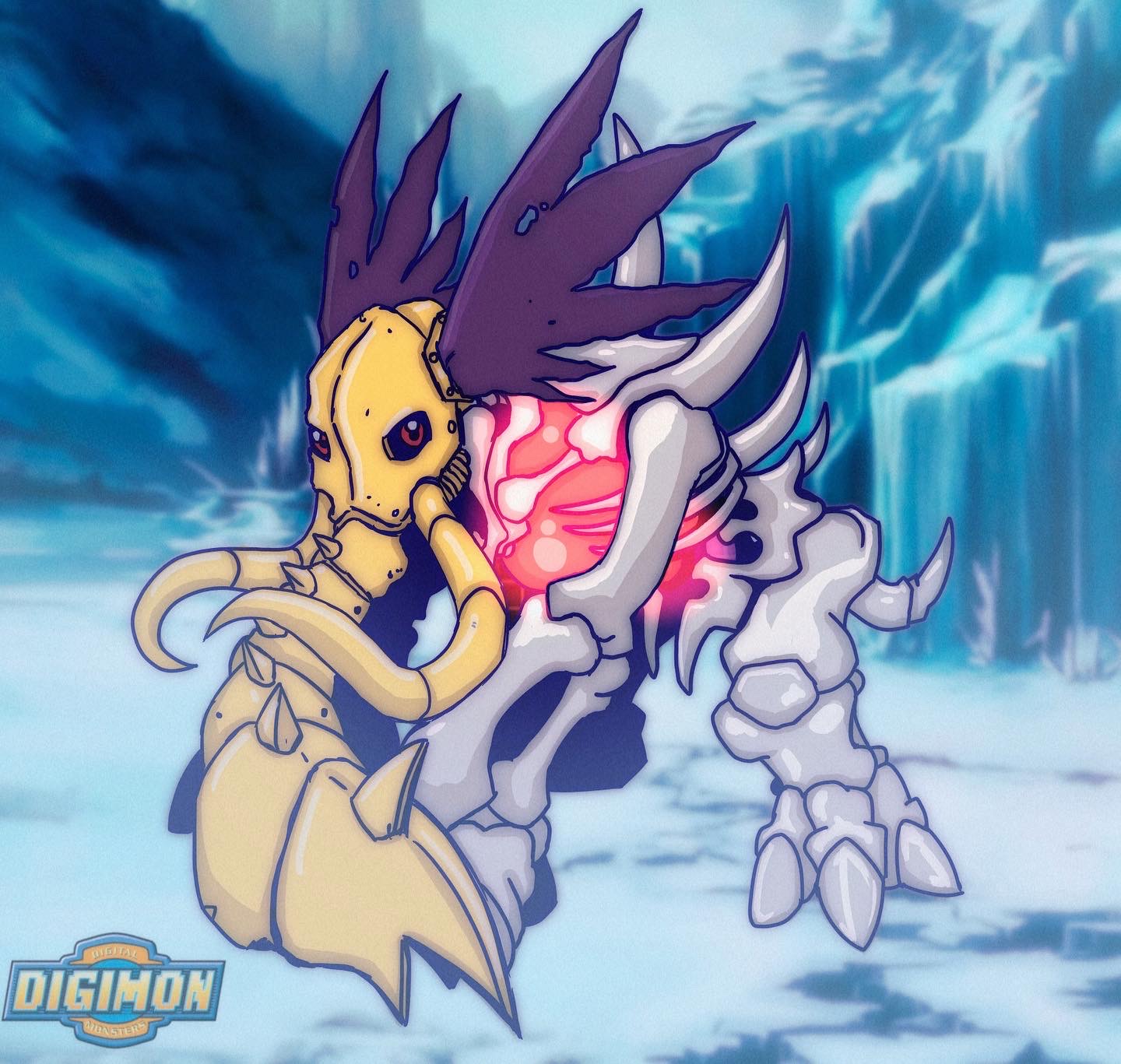 digicore digimon digimon_(creature) highres skeleton skull skullmammon solo solo_focus